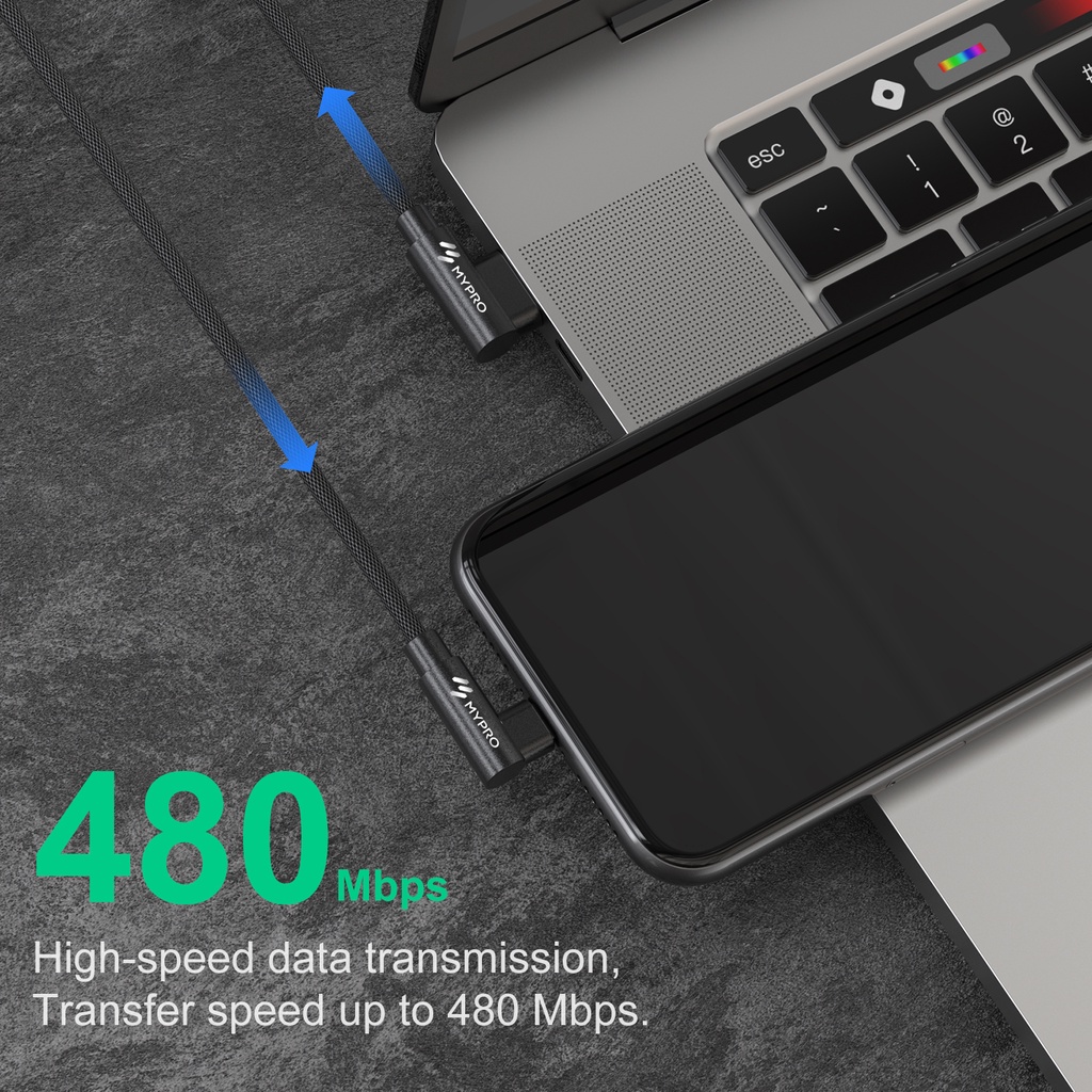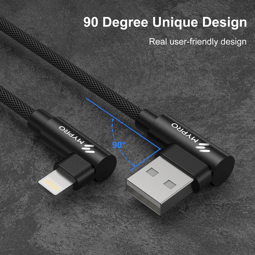 Mypro Right Angle Light_nin Fast Data Charger Cable Supports Up To 3A Charge Current