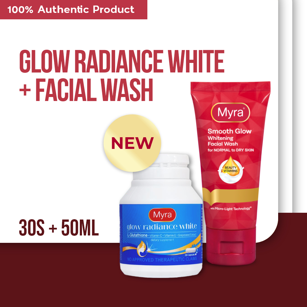 Myra Glow Radiance White with L-Glutathione 30s + Myra Smooth Glow Whitening Facial Wash 50ml