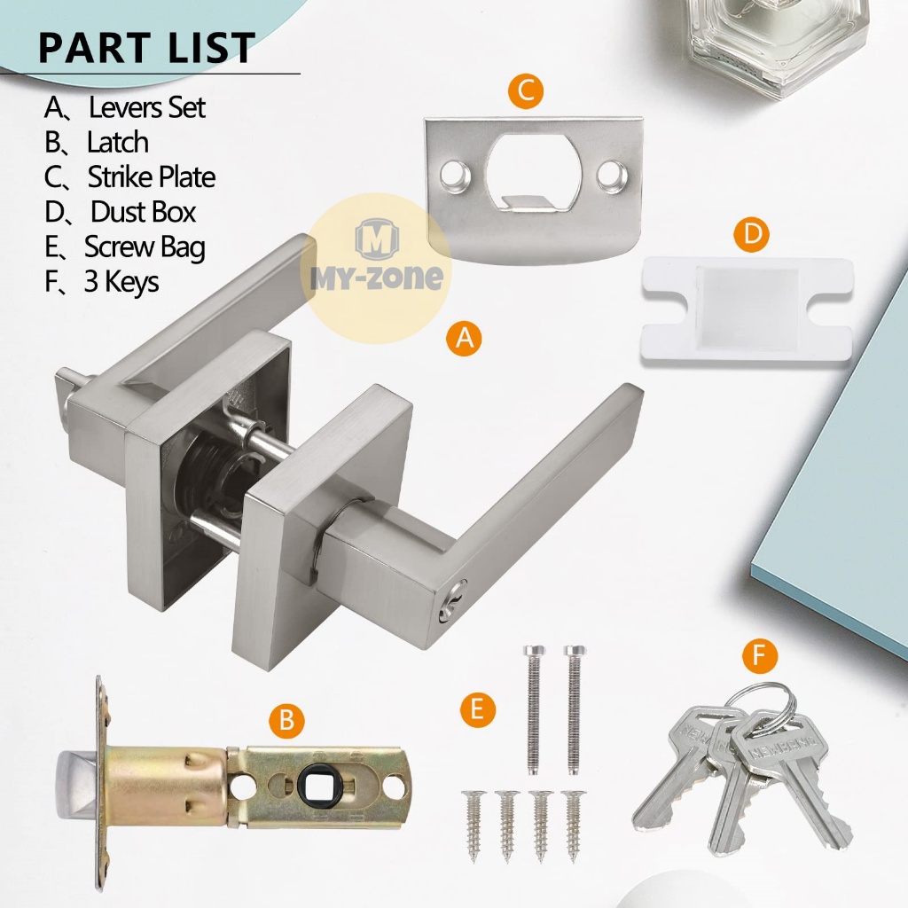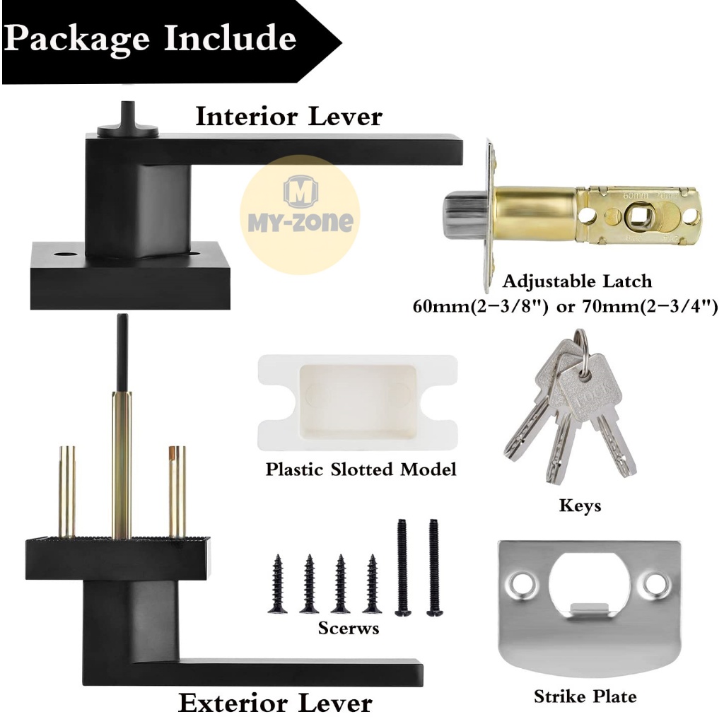 Myzone simple door lock inside door nob double lock Black Modern double lock door knob