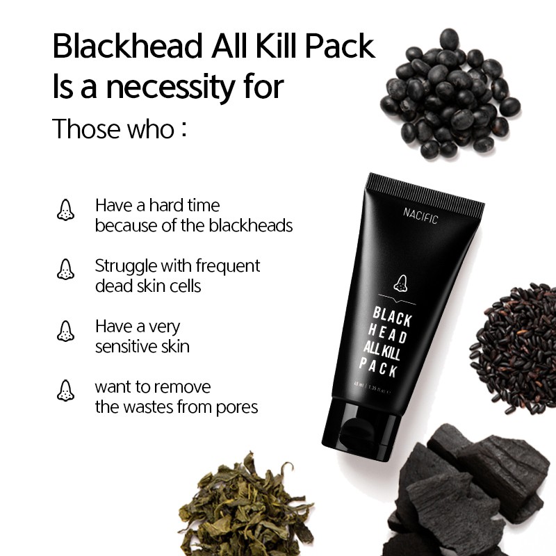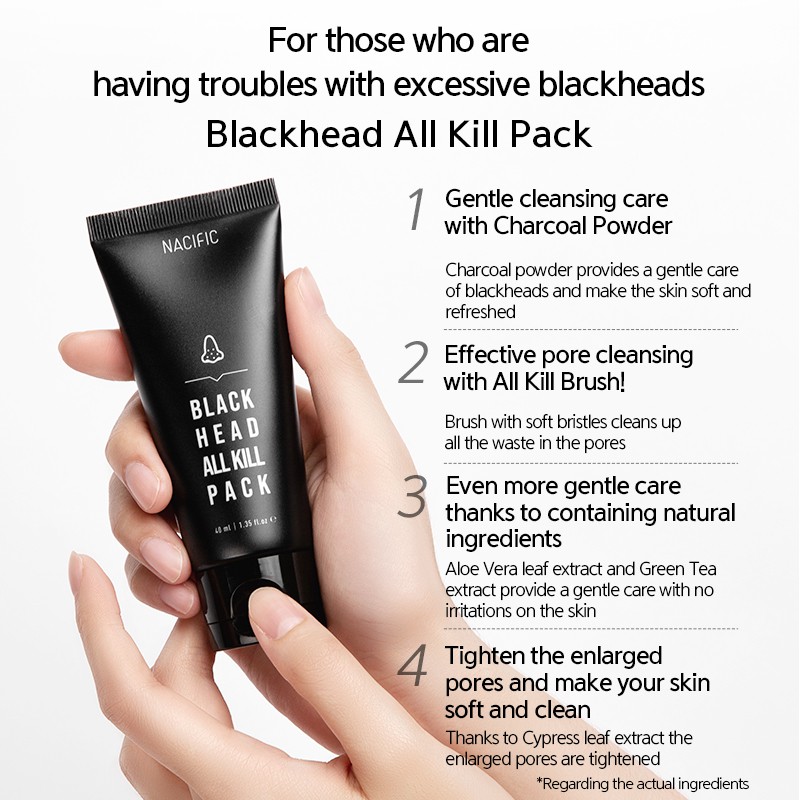 NACIFIC Blackhead All Kill Pack Brush 40ml, Charcoal Powder, Pore Care
