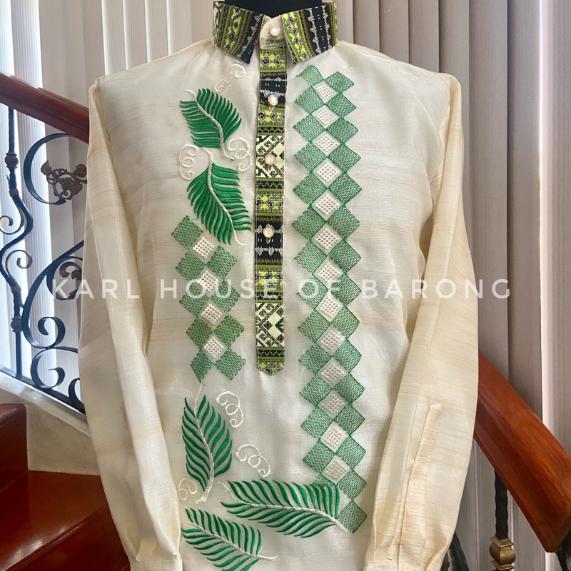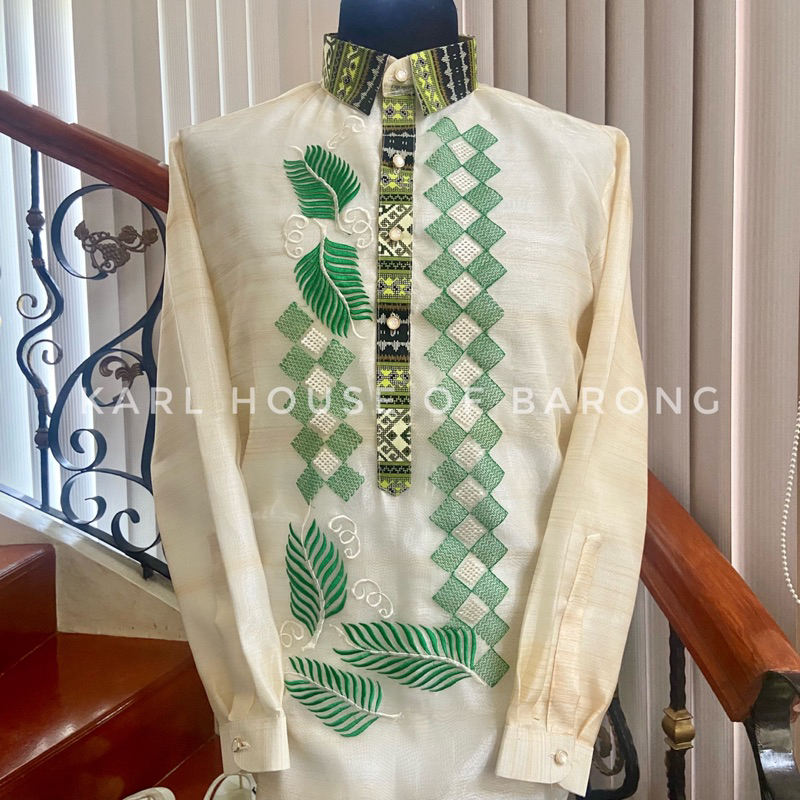 NATIVE Barong Tagalog for Men (YELLOW GOLD & GREEN)
