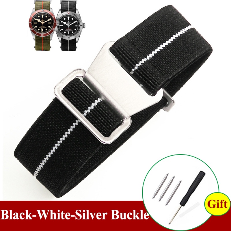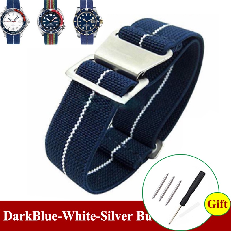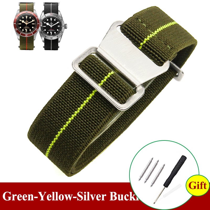 NATO Watch Strap Military Parachute Watch Band 60's French Troops Parachute Elastic Watch Bands Fabric Nylon Canvas Strap 20mm 22mm for Women Men