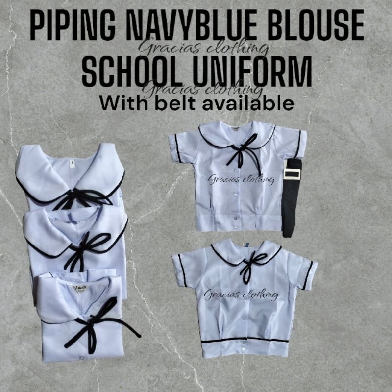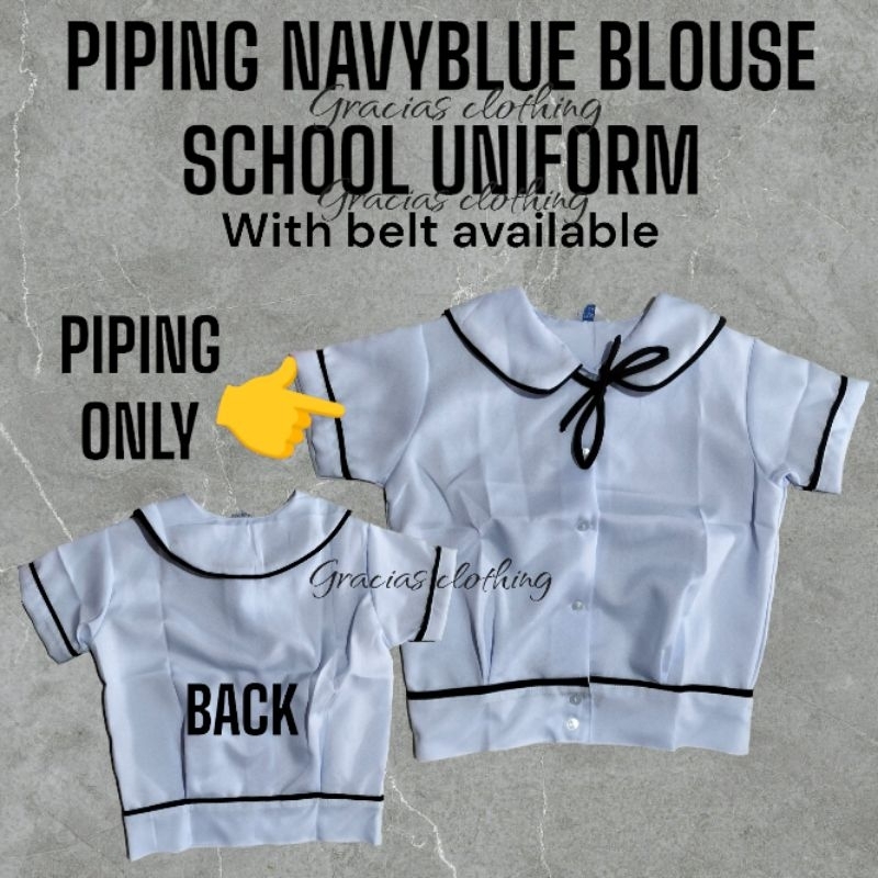 NAVYBLUE PIPING BLOUSE/ BLOUSE PIPING SCHOOL UNIFORM/ BLOUSE PIPING NAVYBLUE WITH BELT AVAILABLE