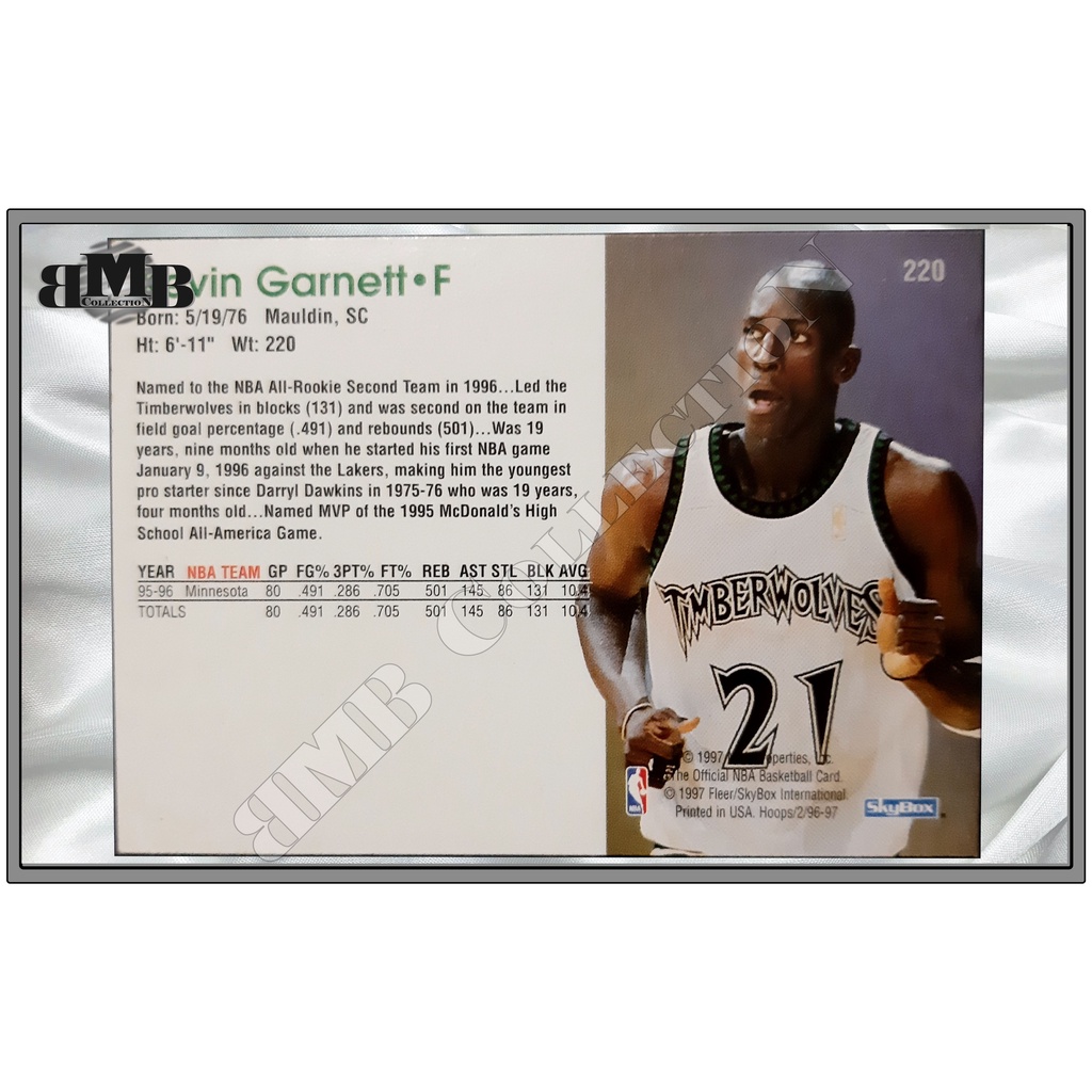 NBA Cards Kevin Garnett NBA Hoops #220 (Year 1997)
