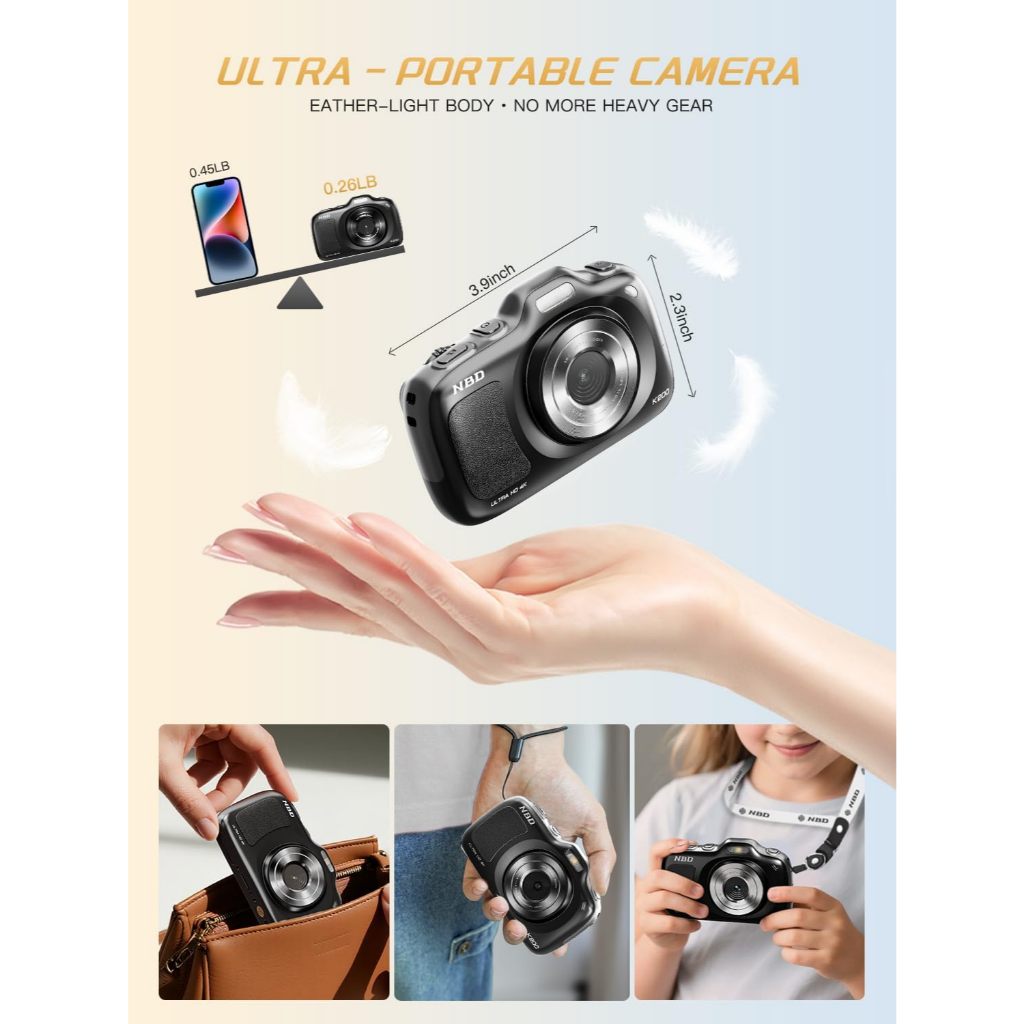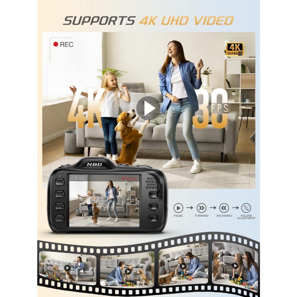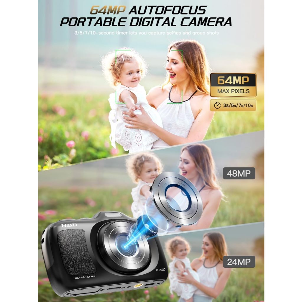 NBD 64MP Digital Cameras for Photography,4K Point and Shoot Camera,16X Zoom Compact Travel Cameras
