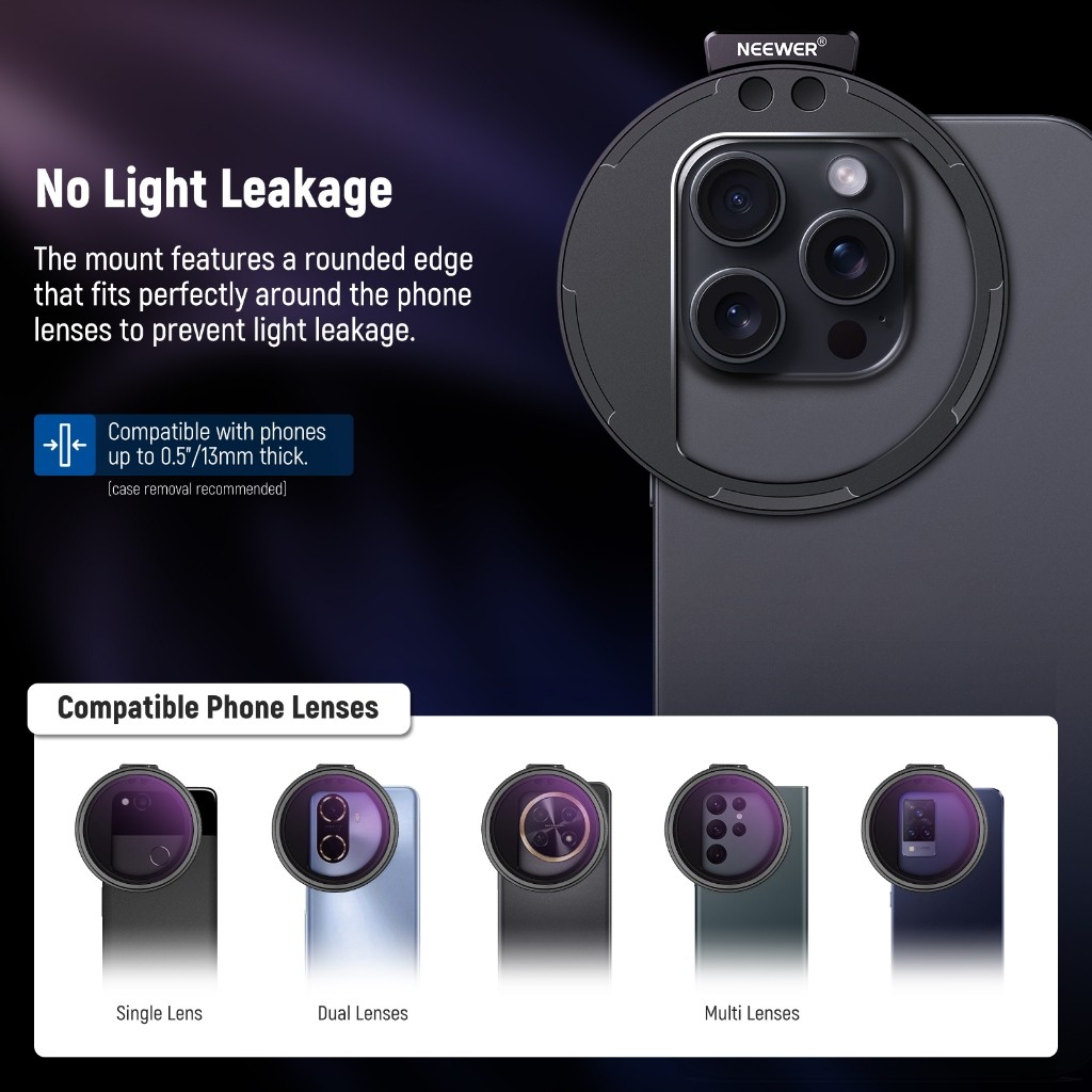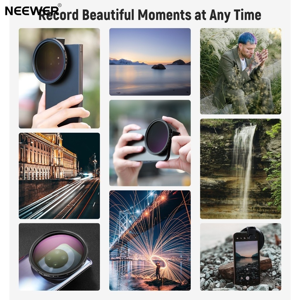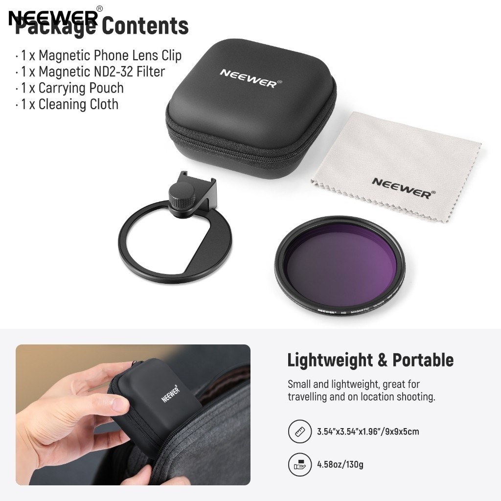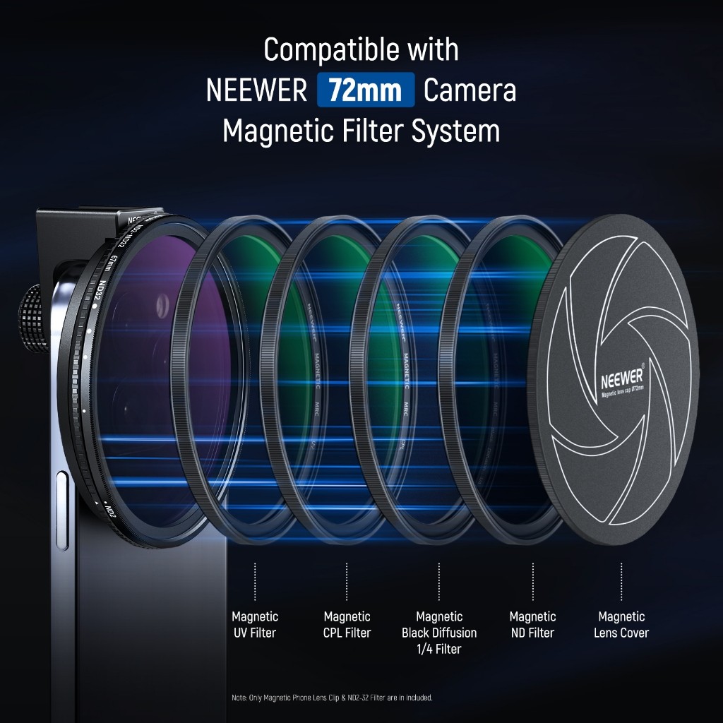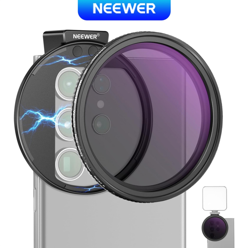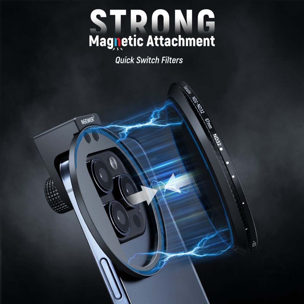NEEWER Clip On 67mm ND2-32 Magnetic Phone Lens Filter Kit, Upgraded Phone Clip with Magnetic Adapter Ring/Cold Shoe/Locking Knob, HD Variable ND Filter for iPhone 15 Pro Max 14 13