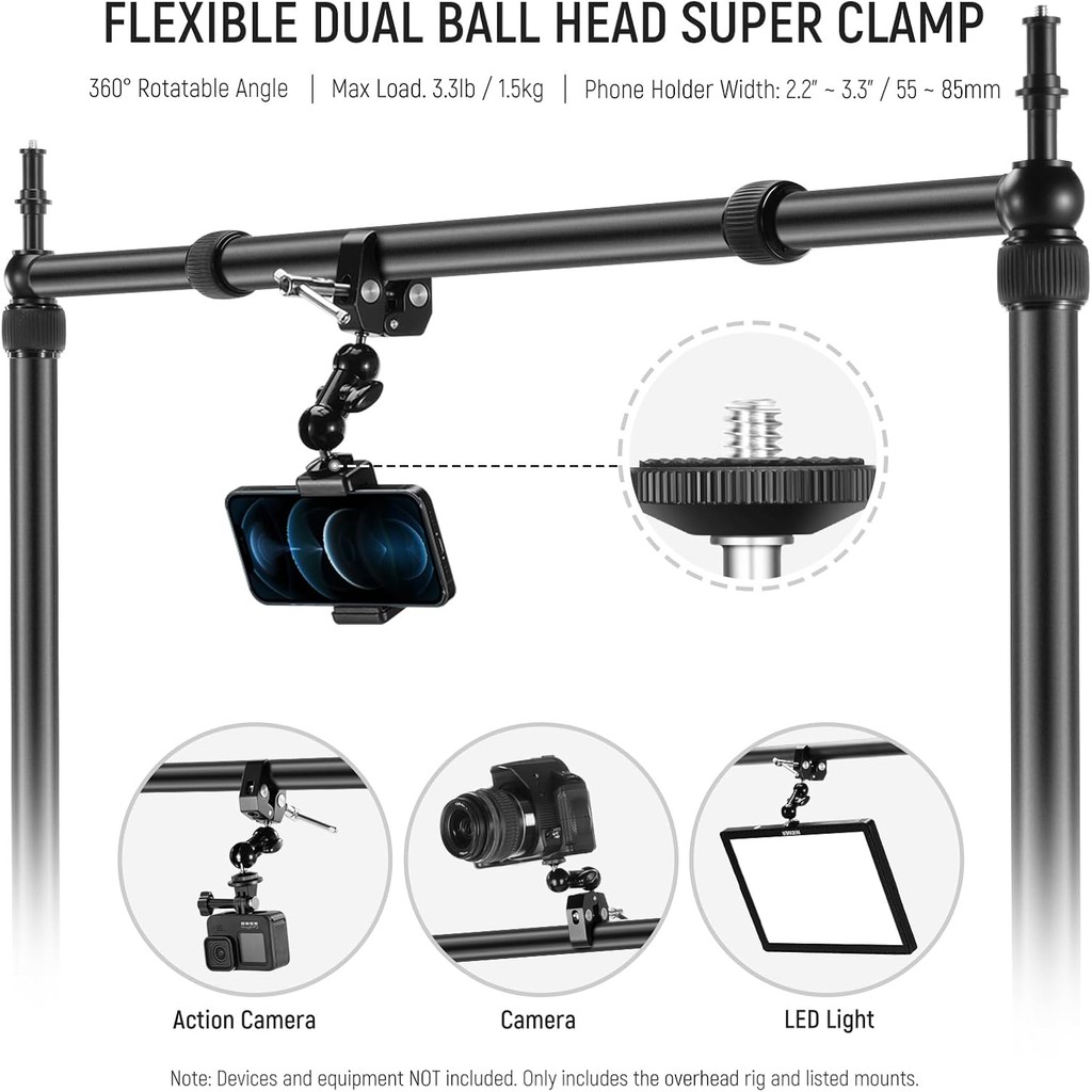NEEWER NK002 Overhead Camera Mount Rig with Desk C Clamp/Super Clamp/Phone Clip