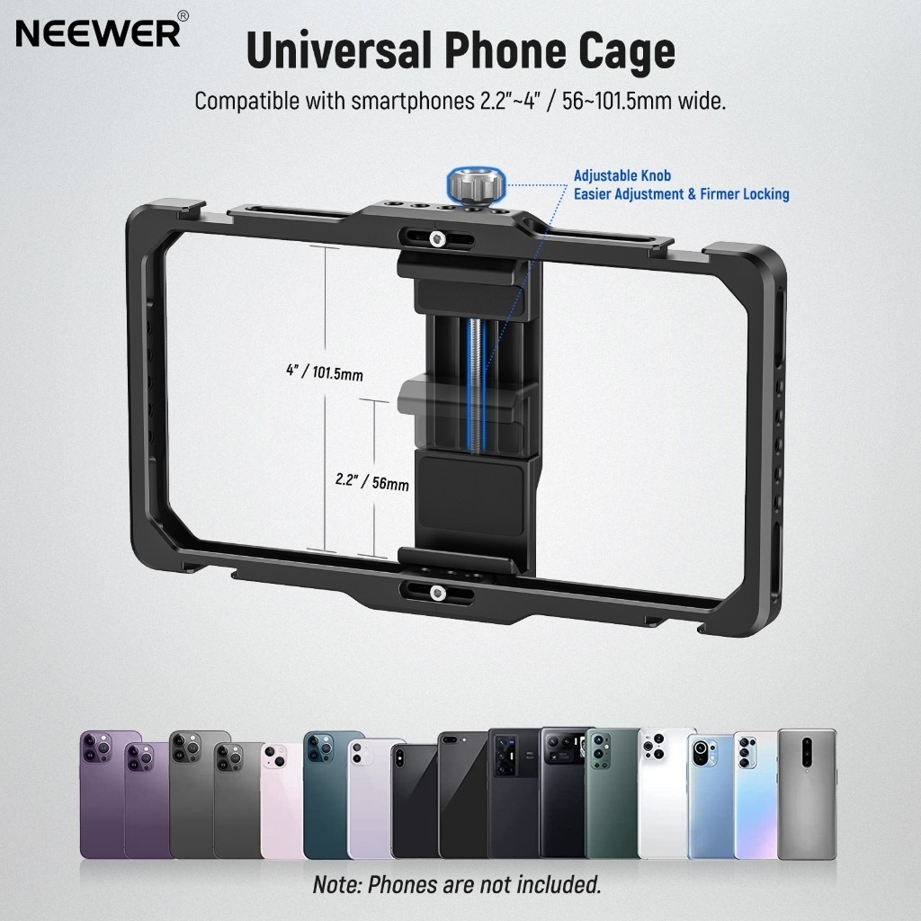 NEEWER Upgraded Phone Cage Video Rig Kit with Dual Side Handles Grip Set, Phone Camera Stabilizer for Video Recording Vlog PA009
