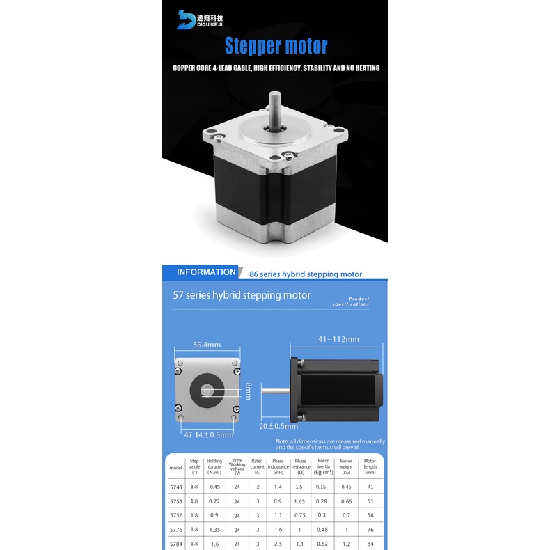 NEMA23 stepper motor 57mm 2-phase 0.9nm 3A stepper motor 4-core cable for 3D printer CNC engraving a