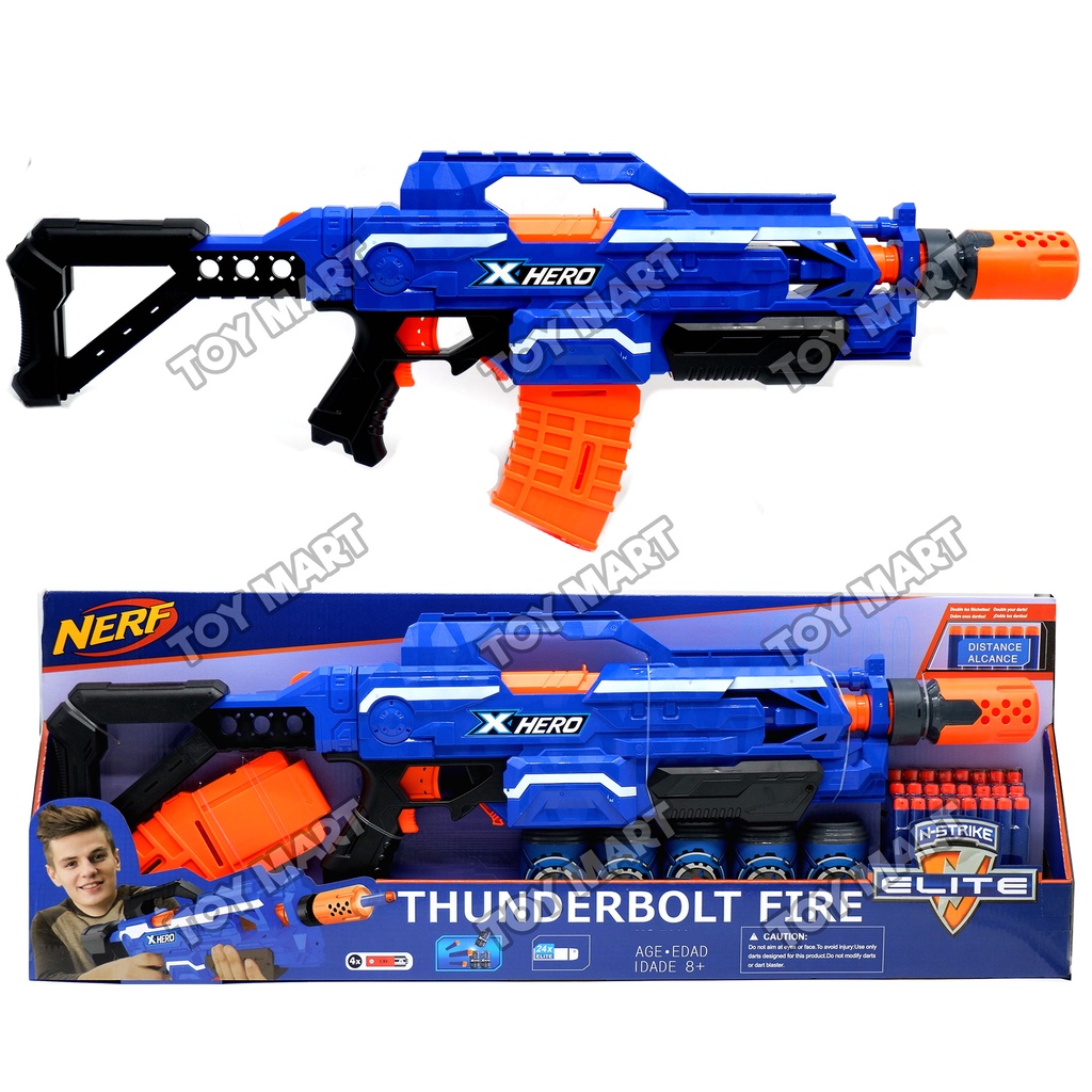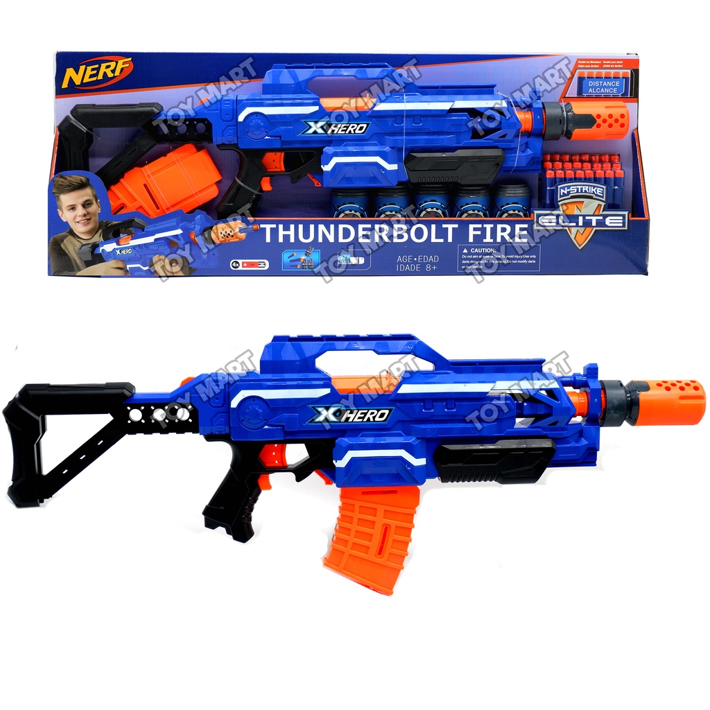 NERF Elite 30" Thunderbolt Fire Rapid Strike Blaster Soft Bullet Battery Operated w/ Target Cans