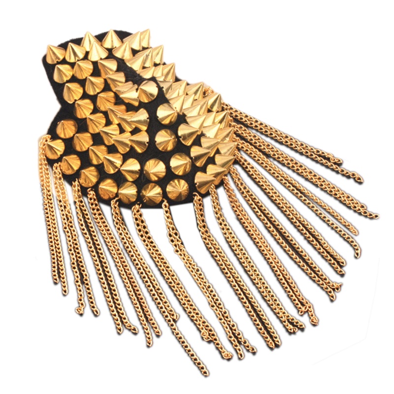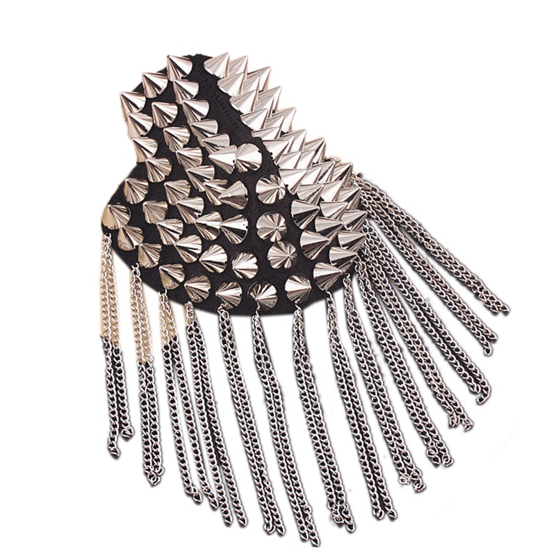 NERV Tassels Shoulder Pads Epaulet Shoulder Pads Nightclub Punk Pointed Cone Tassel Epaulet Punk Jewelry Stage Costume