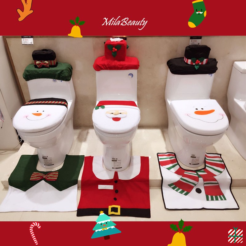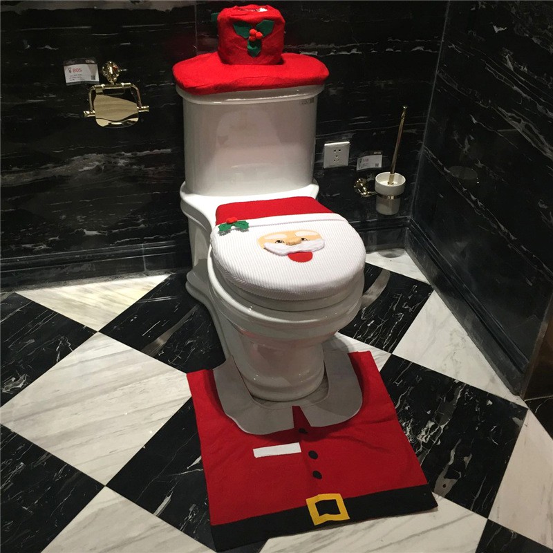 NEW 3pcs/set Christmas Decor Elves Elk Santa Snowman Toilet Seat Cover