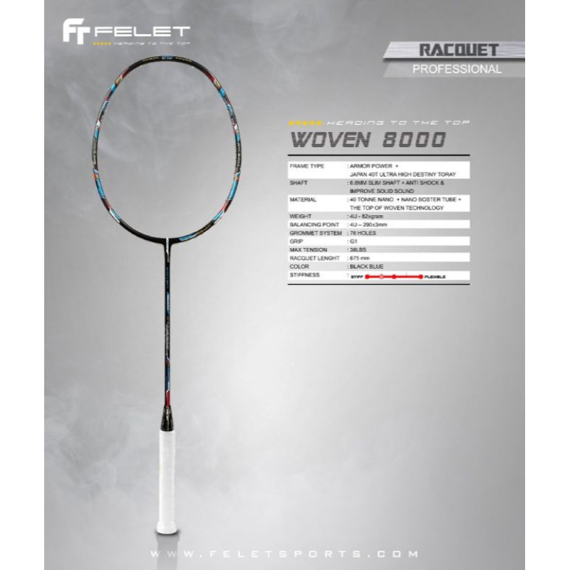NEW ARRIVAL FELET WOVEN 8000 BADMINTON RACKET