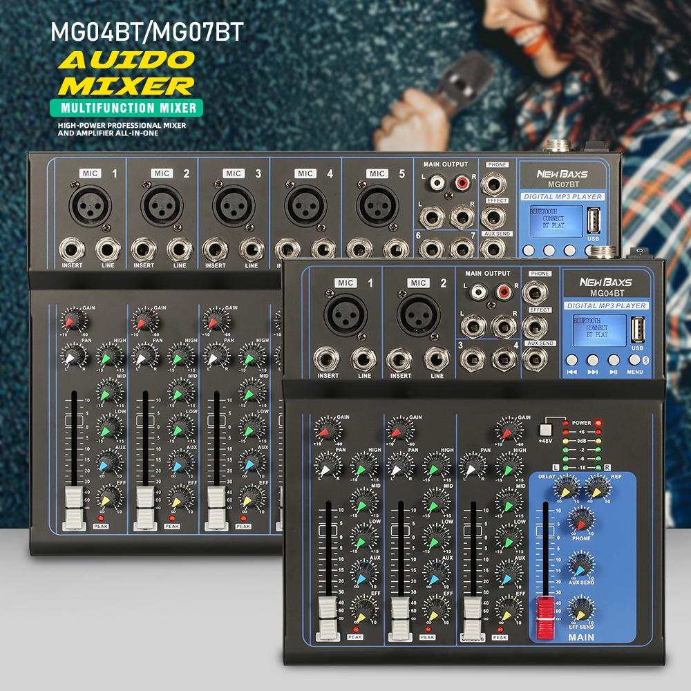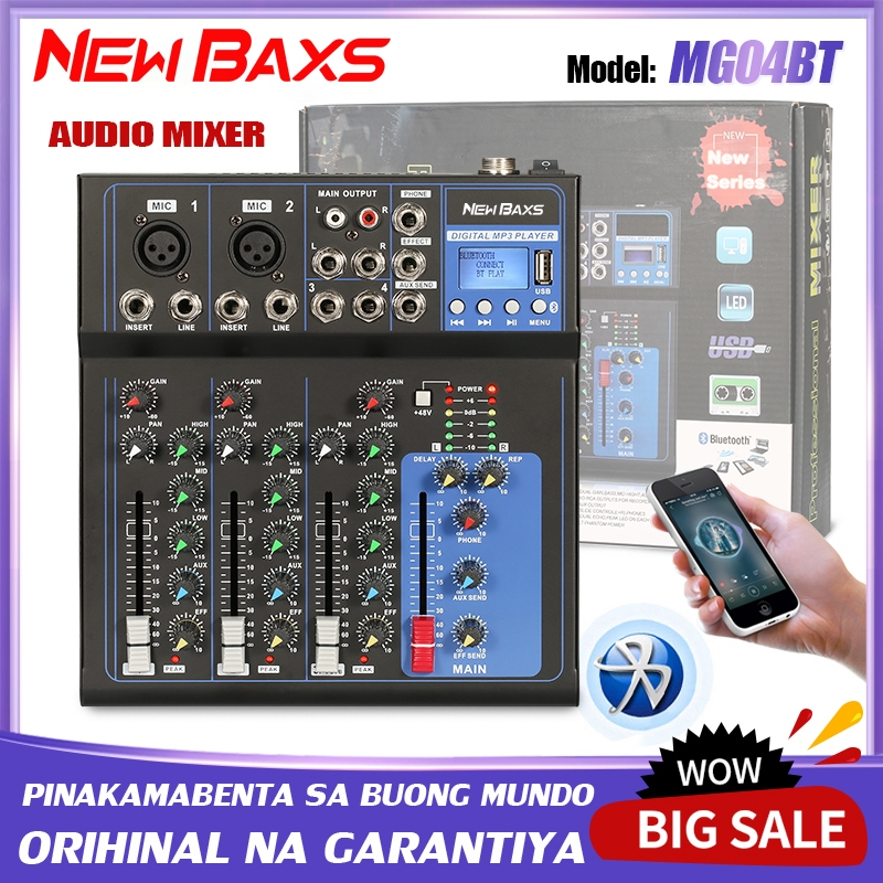 NEW BAXS MG04BT Audio Mixer with equalzier effects 4-channel recording Suport Bluetooh mp3 USB