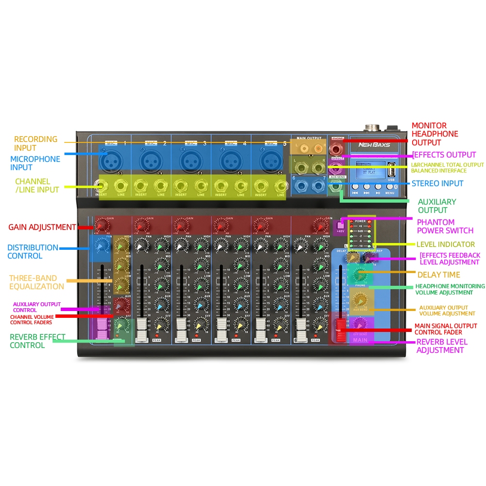NEW BAXS MG07BT Professional Audio Mixer 7-channel built-in EQ/recording Suport bluetooth USB MP3