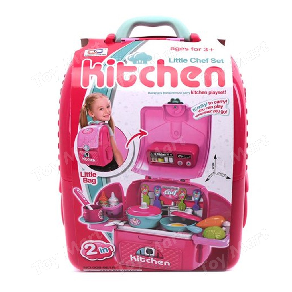NEW Cooking Kitchen Pretend Play Set Toy for Girls Convert to Backpack