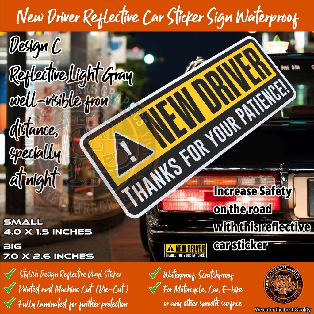 NEW DRIVER CAR STICKER SIGN waterproof reflective vinyl sticker fit for motorcycle car or e-bike