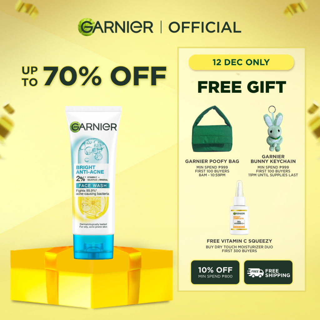 Garnier 2% Salicylic Acid Anti Acne 3-in-1 Facial Cleanser (100ml/50ml) - For pimples, pores