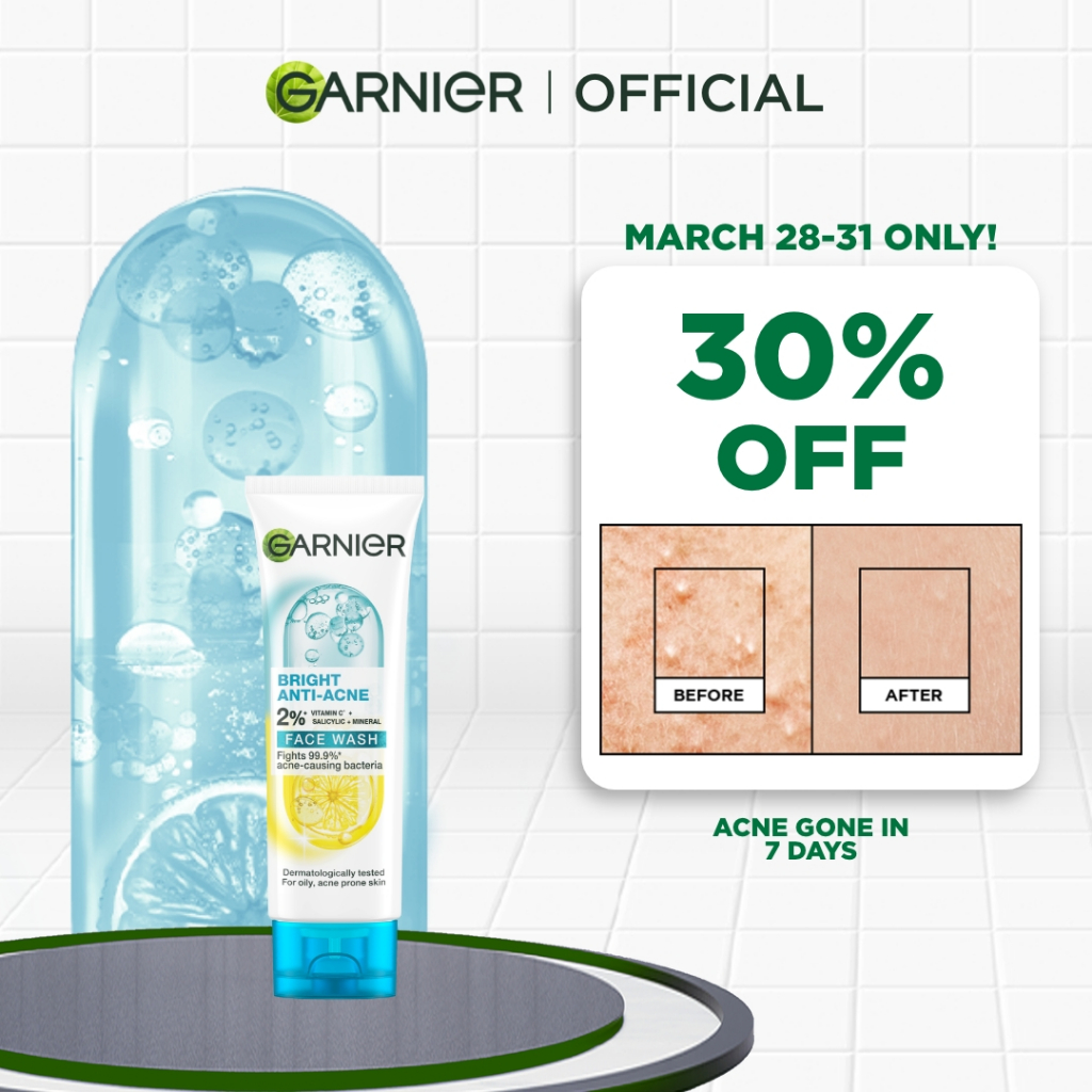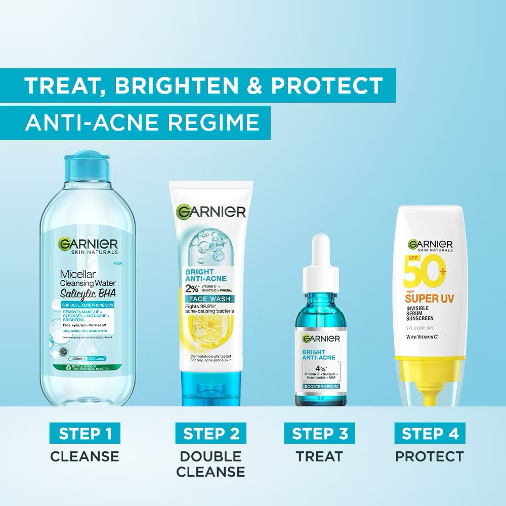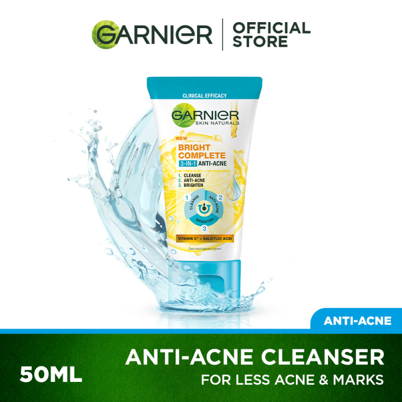 Garnier Bright Complete Vitamin C Anti-Acne 3-in-1 Cleanser (50ML) - Anti Acne Cleanser, Skincare