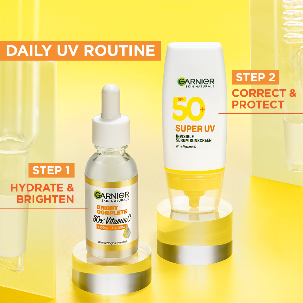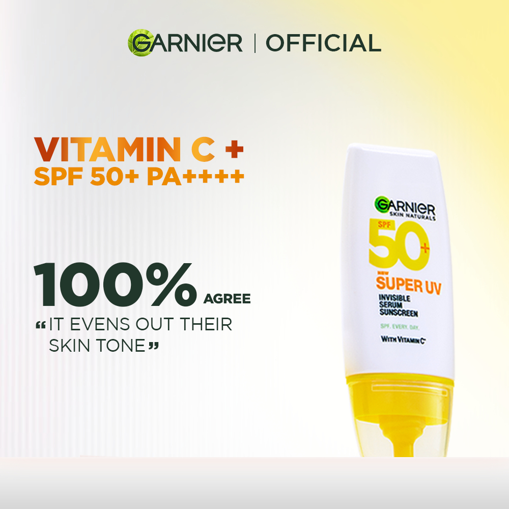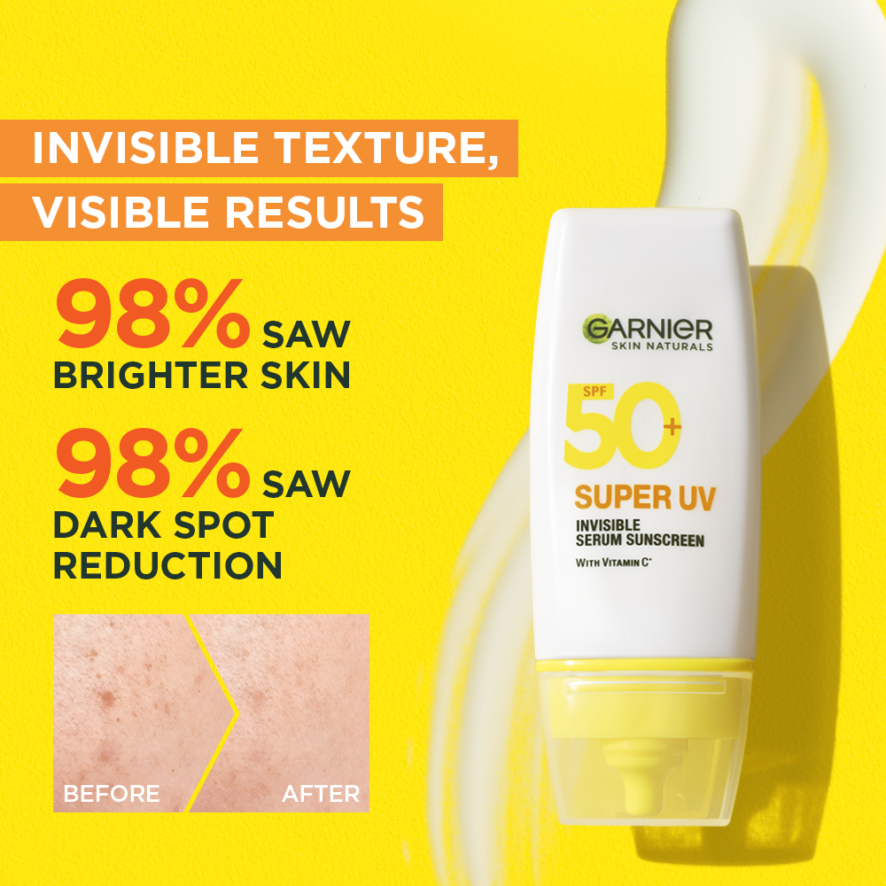 NEW Garnier Super UV Vitamin C Invisible Serum Sunscreen SPF50+ UV Protection, Dark Spot Reduction