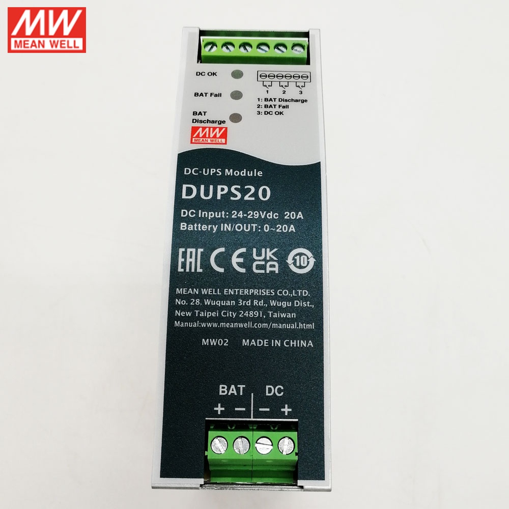 NEW MEAN WELL DUPS20 24V 20A DIN Rail Type Uninterruptible DC-UPS Module Controller DC-UPS Power Supply Diagnosis
