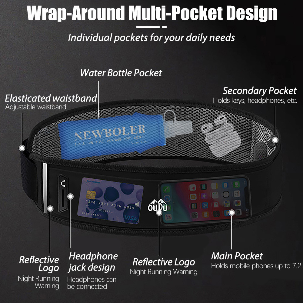 NEWBOLER Outdoor Running Belt With Soft Water Bottle Running Bag Breathable Sports Waist Bag Fitness Mountaineering Marathon Accessories