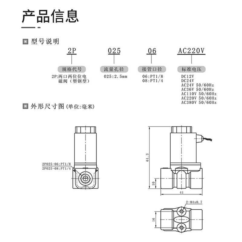 NGS Pneumatic Plastic Solenoid Valve Two Port Two Position Air Valve Water Valve 2P025-08 06 Dc24v B