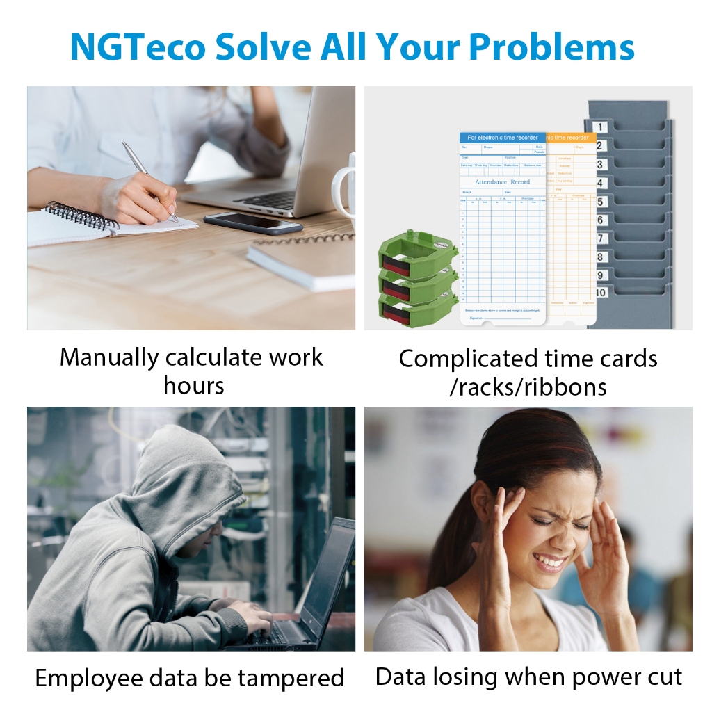 NGTeco W3 Fingerprint Time Attendance Machine WiFi Auto Digital Bundy Clock APP Punch Card Machine