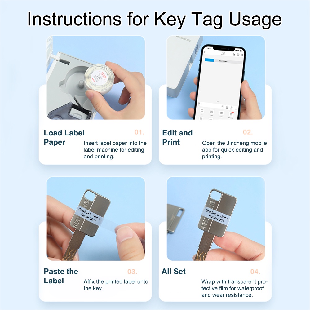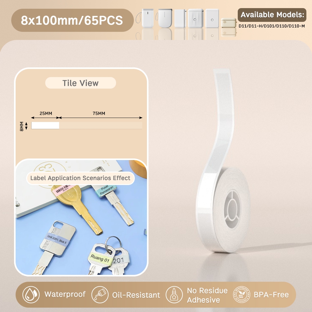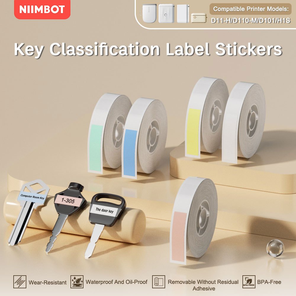 NIIMBOT D11/D110/D101 New Key Label Paper for Key Classification Labels Waterproof Name Stickers