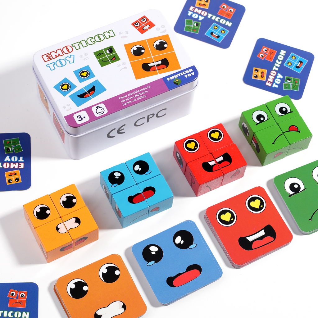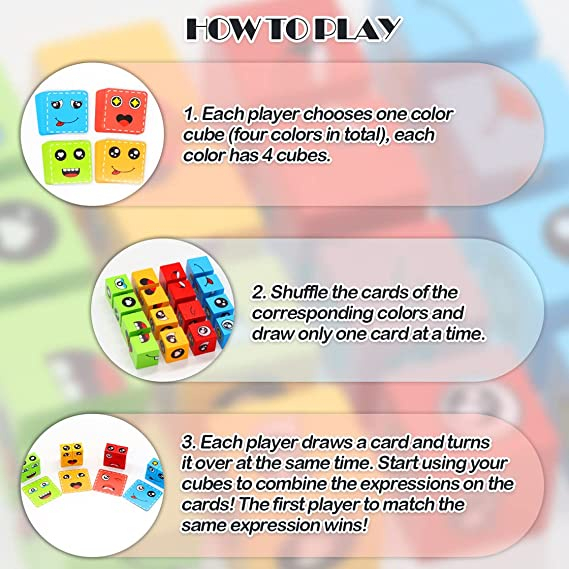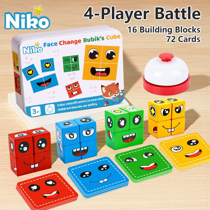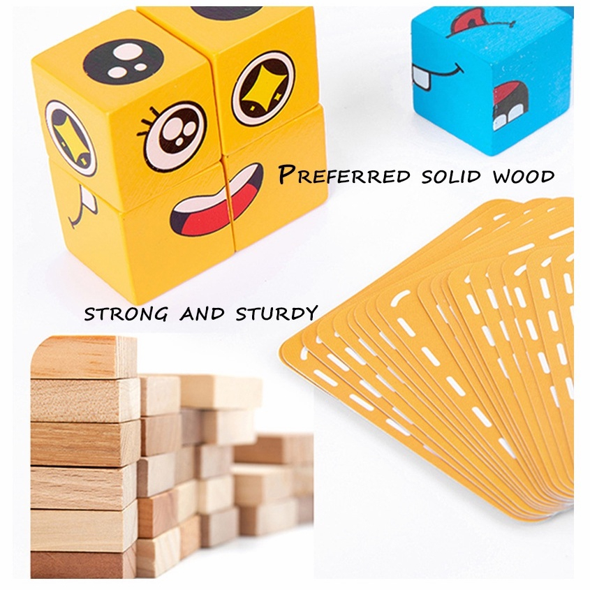 NIKO 72pcs Cards Wooden Face Changing Educational Magic Cube Building Blocks Puzzle Board Game For Kids Gifts