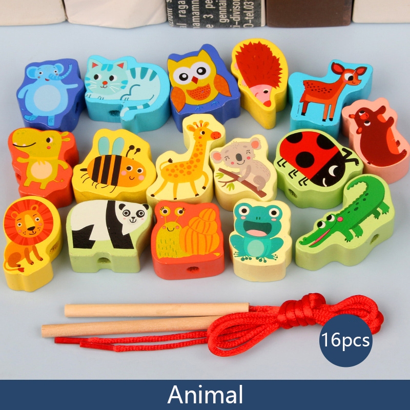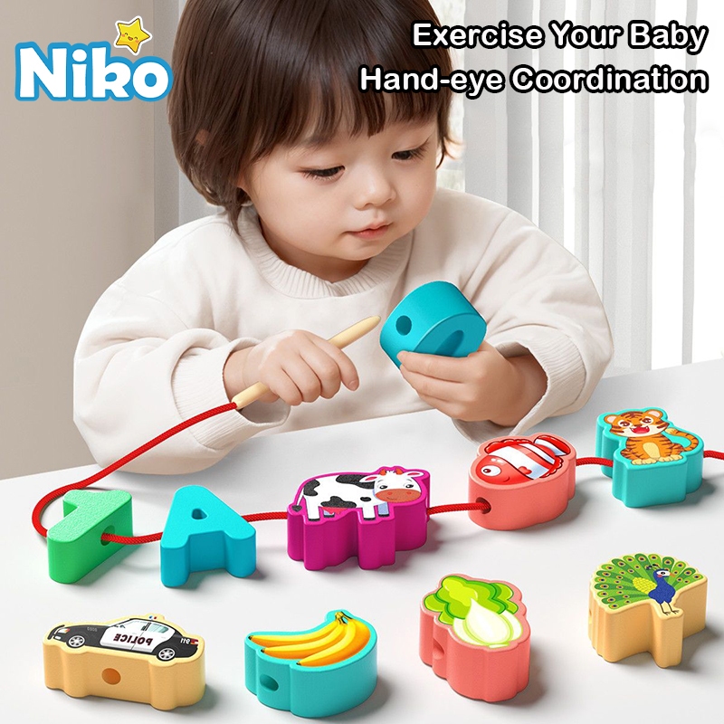 NIKO Wooden Lacing Beads Toy Early Educational Toys Montessori Toys String Beads Toy For Kids Boys Girls Gifts