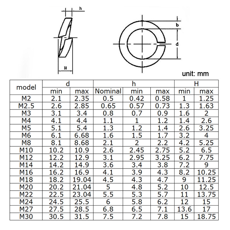 NINDEJIN 1-100Pcs Spring Lock Washer M2 M2.5 M3 M4 M5 M6 M8 M10 M12 M14 M16 M18 M20 M22 M24 M30 304 Stainless Steel Locking