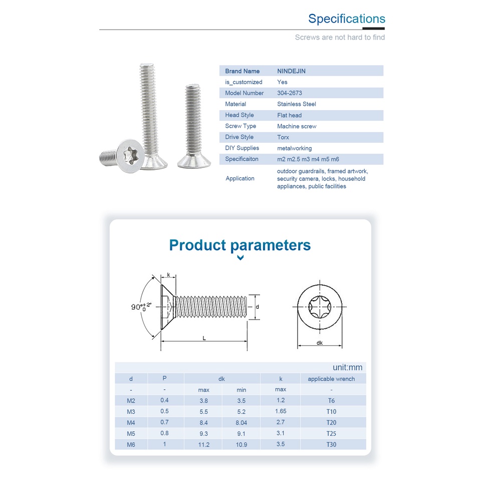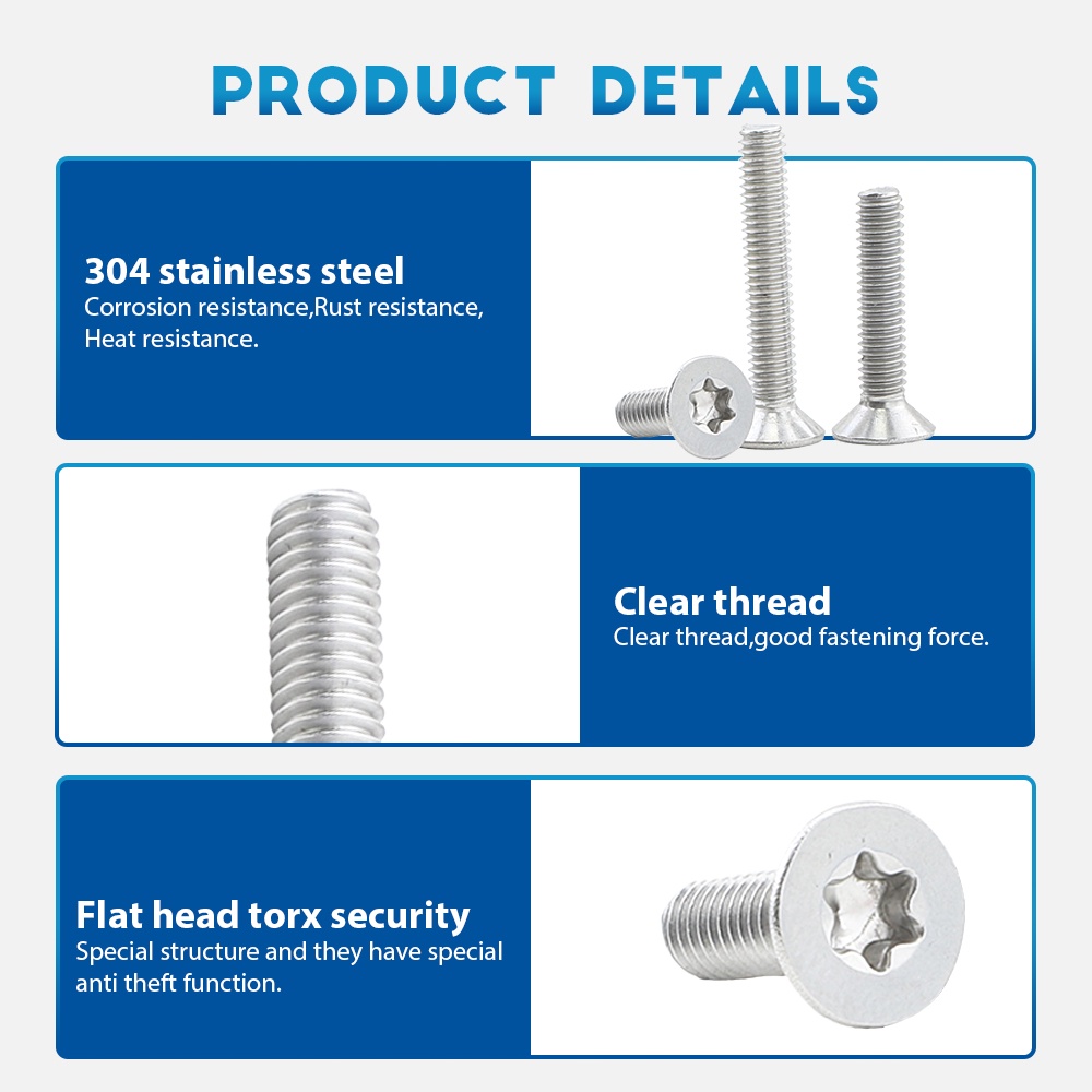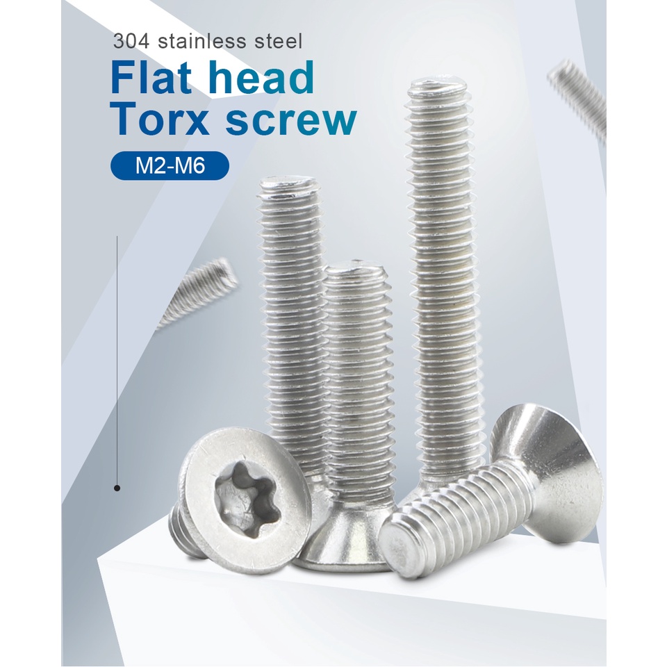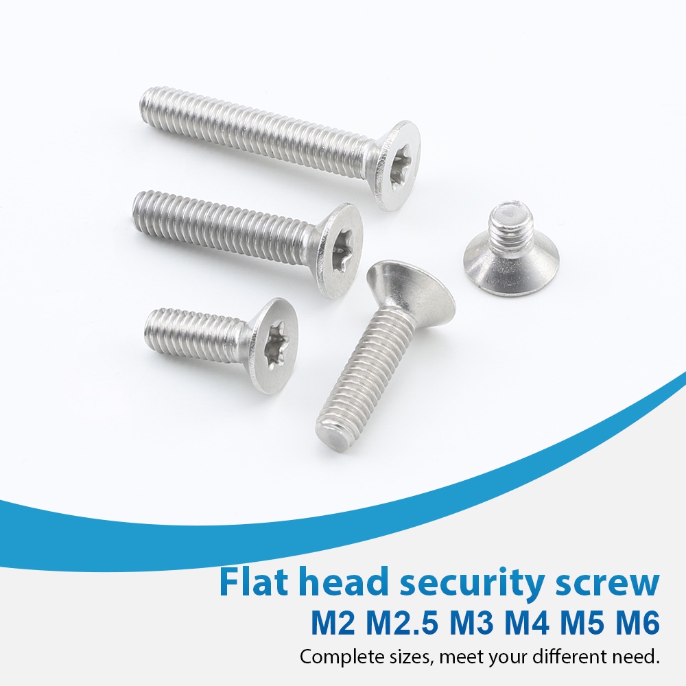 NINDEJIN Flat Head Torx Security Screw Torx Pin M2 M2.5 M3 M4 Stainless Steel Tamper Resistant Screw Security Torx Car Screw