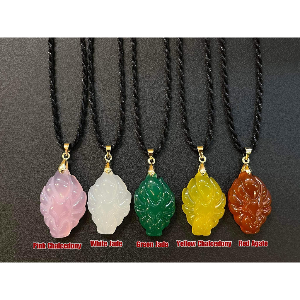 NINE TAILED FOX STONE IN BLACK STRING CHARM NECKLACE 8