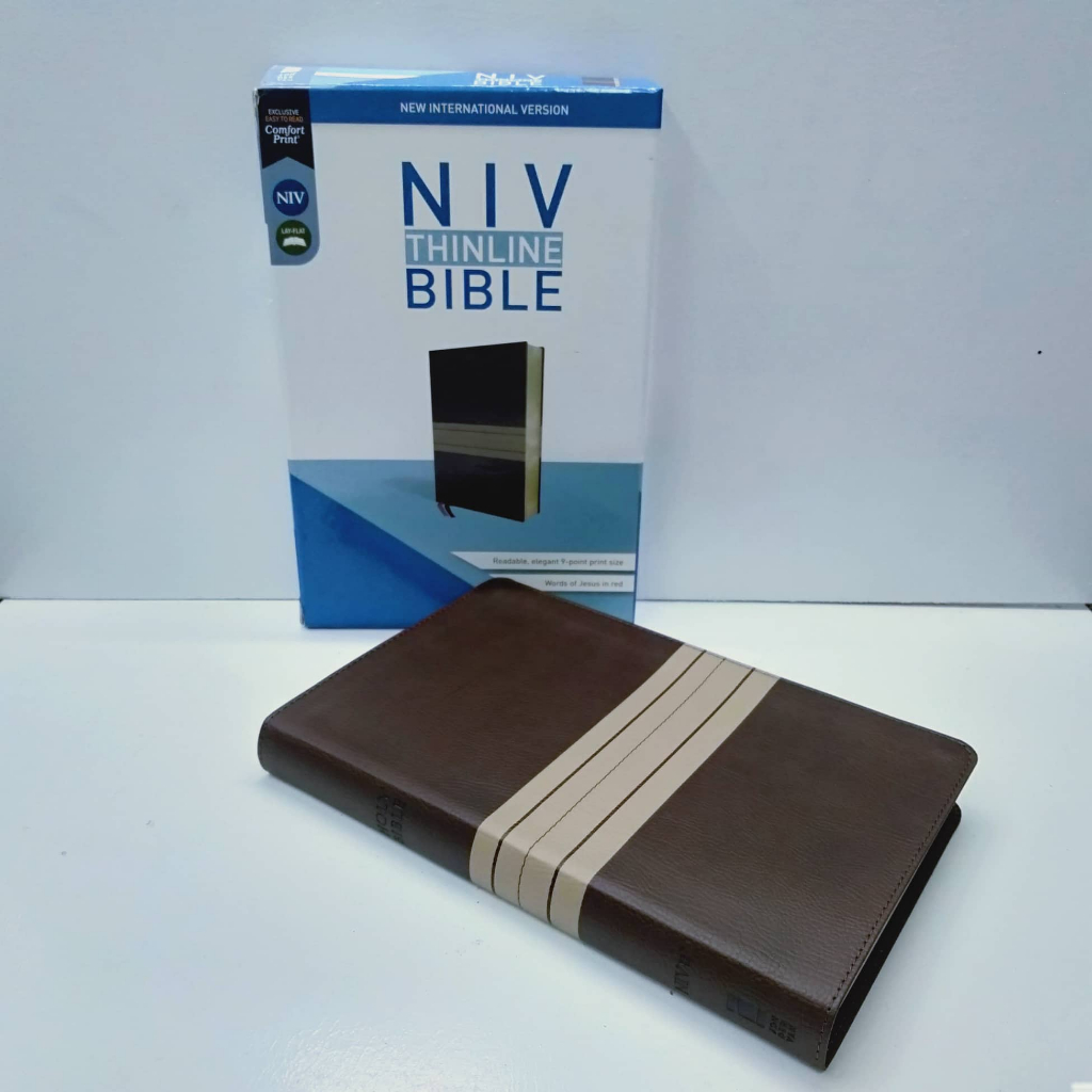 NIV THINLINE BIBLE, Leathersoft, Brown/Tan, Red Letter (Imitation Leather) BY Zondervan