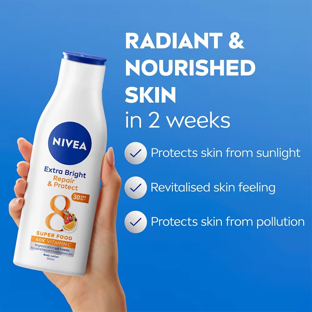 NIVEA Body Lotion Extra Bright Repair and Protect Lotion Moisturizer with SPF 30, 200ml