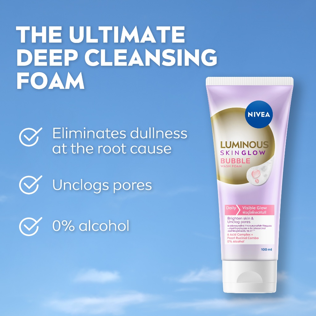 NIVEA Face Cleanse Luminous Skin Glow Bubble Foam for 10x brighter skin, 100ml