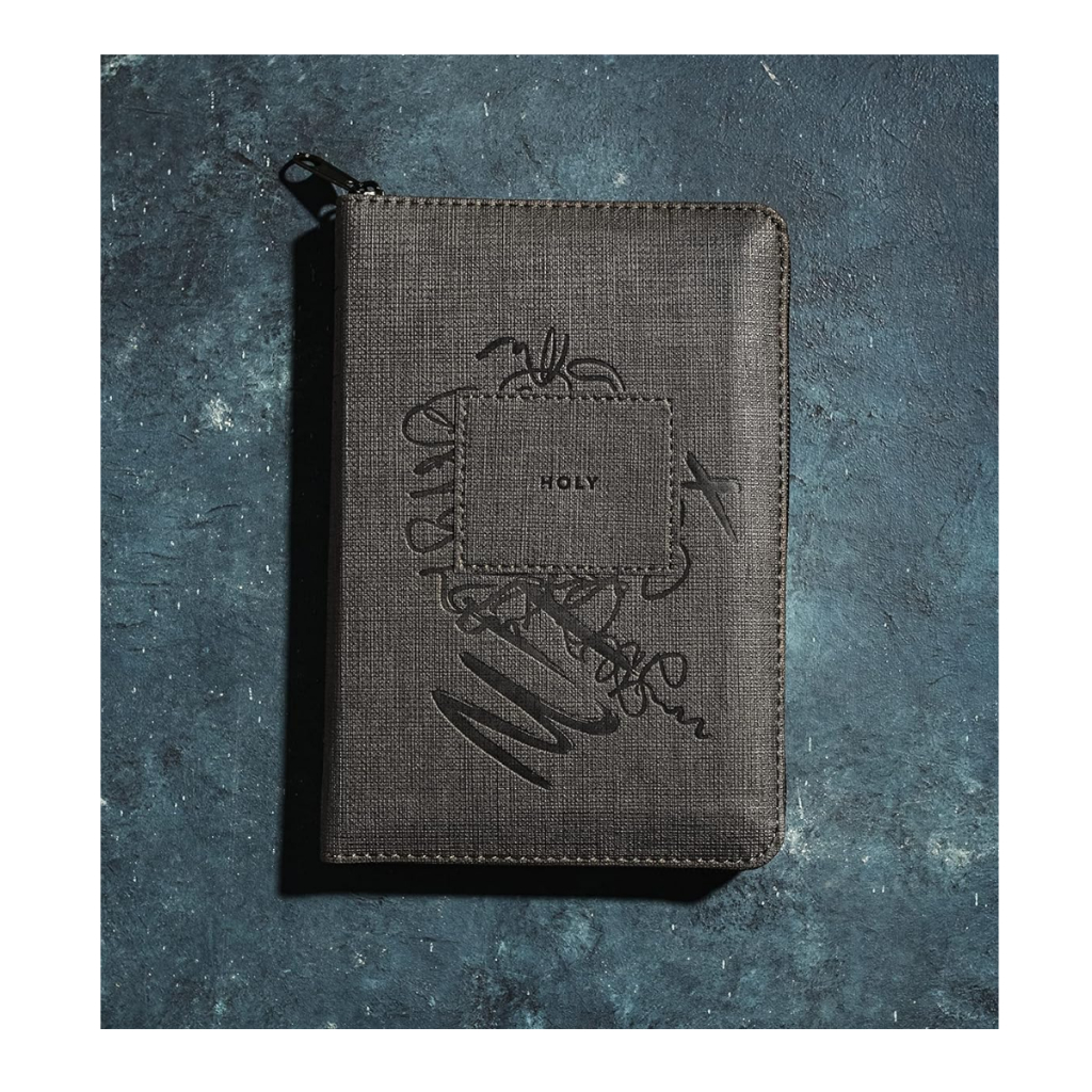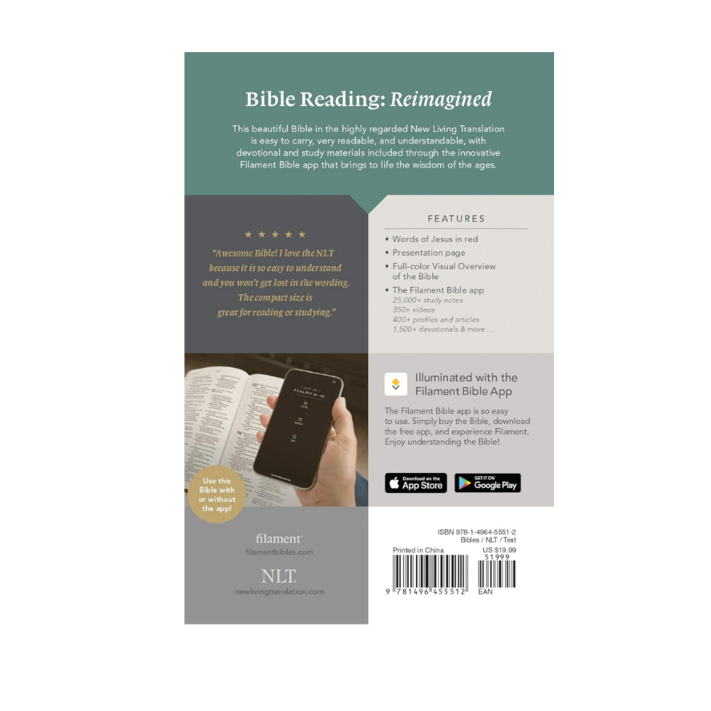 NLT Compact Zipper Bible, Filament Enabled (LeatherLike, Charcoal Patch,Red Letter)Imitation Leather