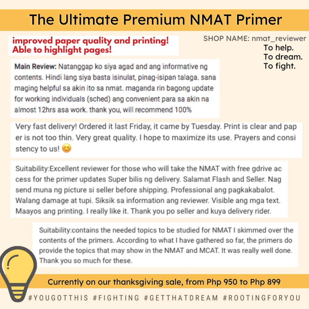 NMAT REVIEWER (THE ORIGINAL ULTIMATE) (with Online Tips, and NMAT Google Drive)