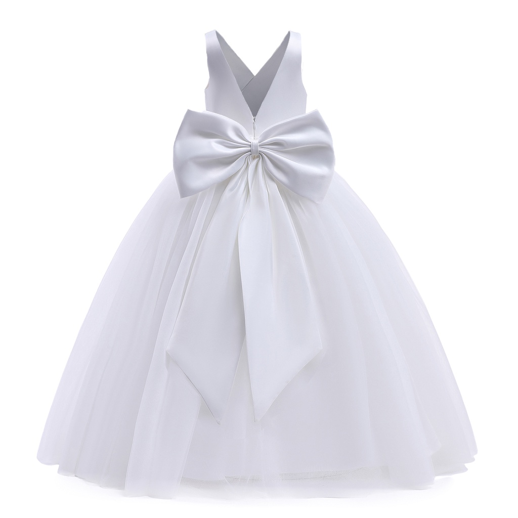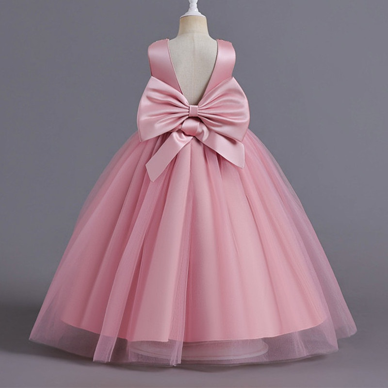 NNJXD Kids Girls Elegant Dress for Evening Backless Pearl Flower Girl Long Gown for Wedding Party Teen Girl Formal Tulle Dresses Red Christmas Dresses