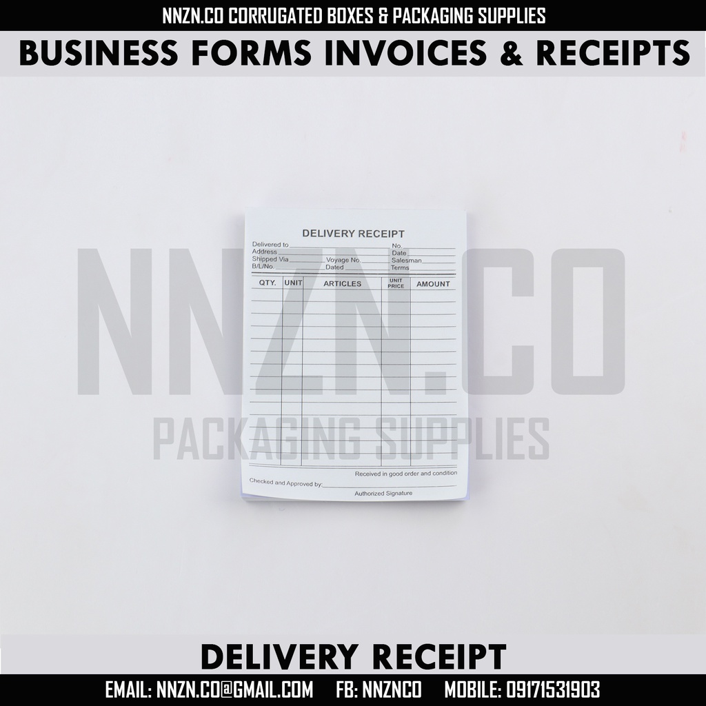 NNZN Business Forms Receipt and Invoices Sales Invoice Delivery Receipt - Per Booklet