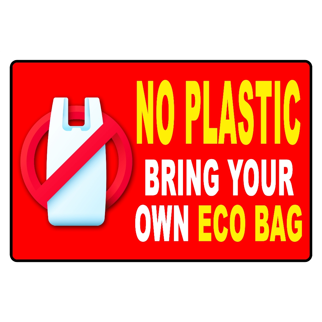 NO PLASTIC BRING YOUR OWN ECO BAG SIGNAGE PVC TYPE WATERPROOF AND NON-FADING