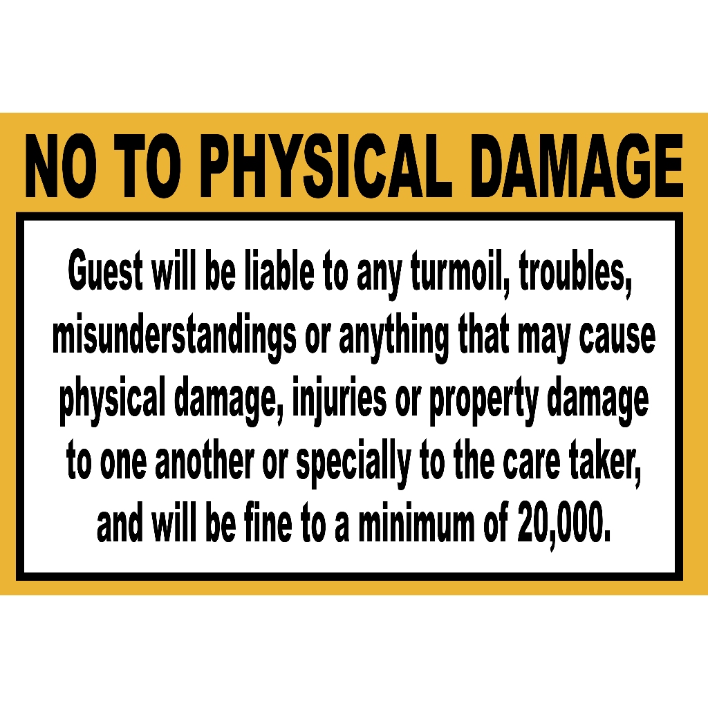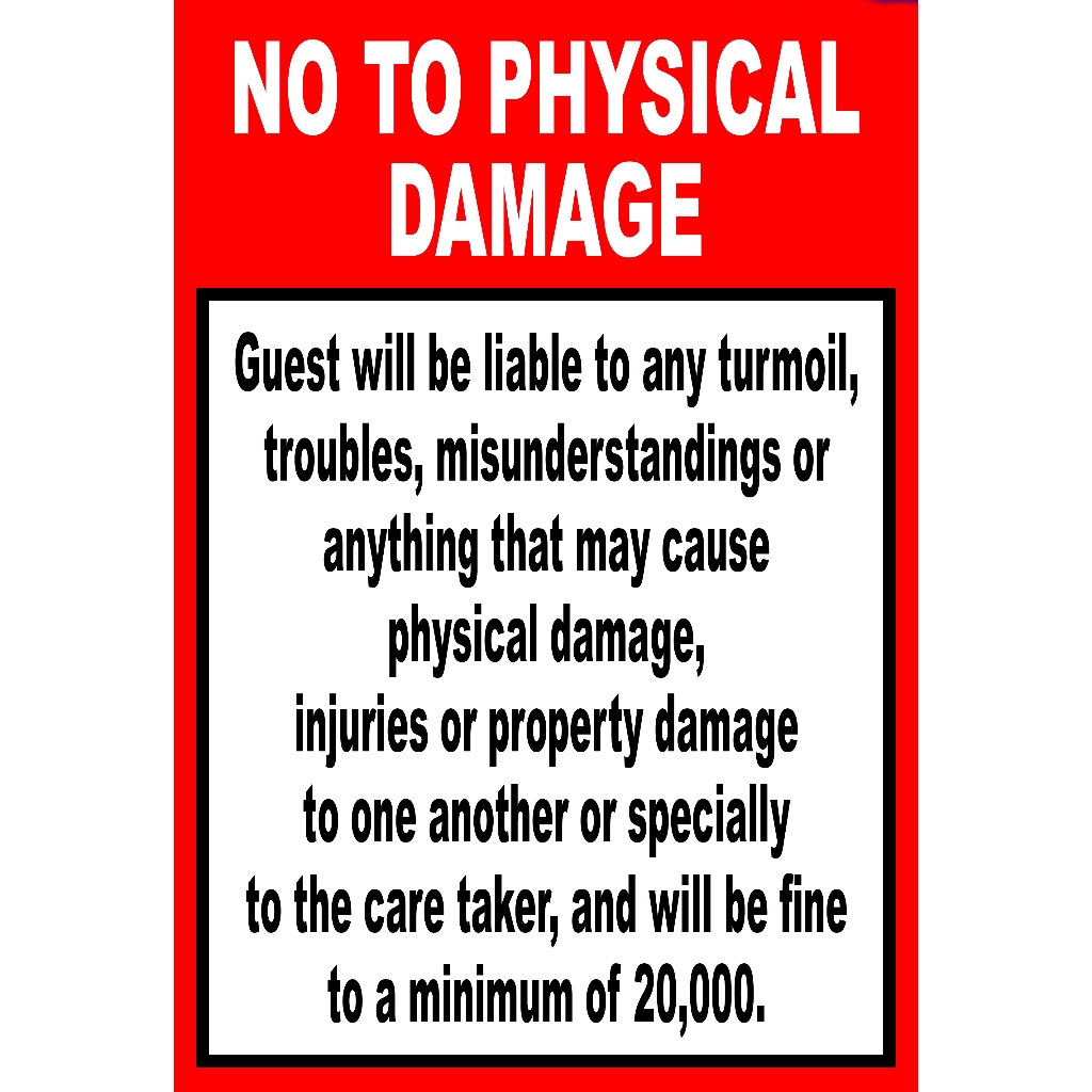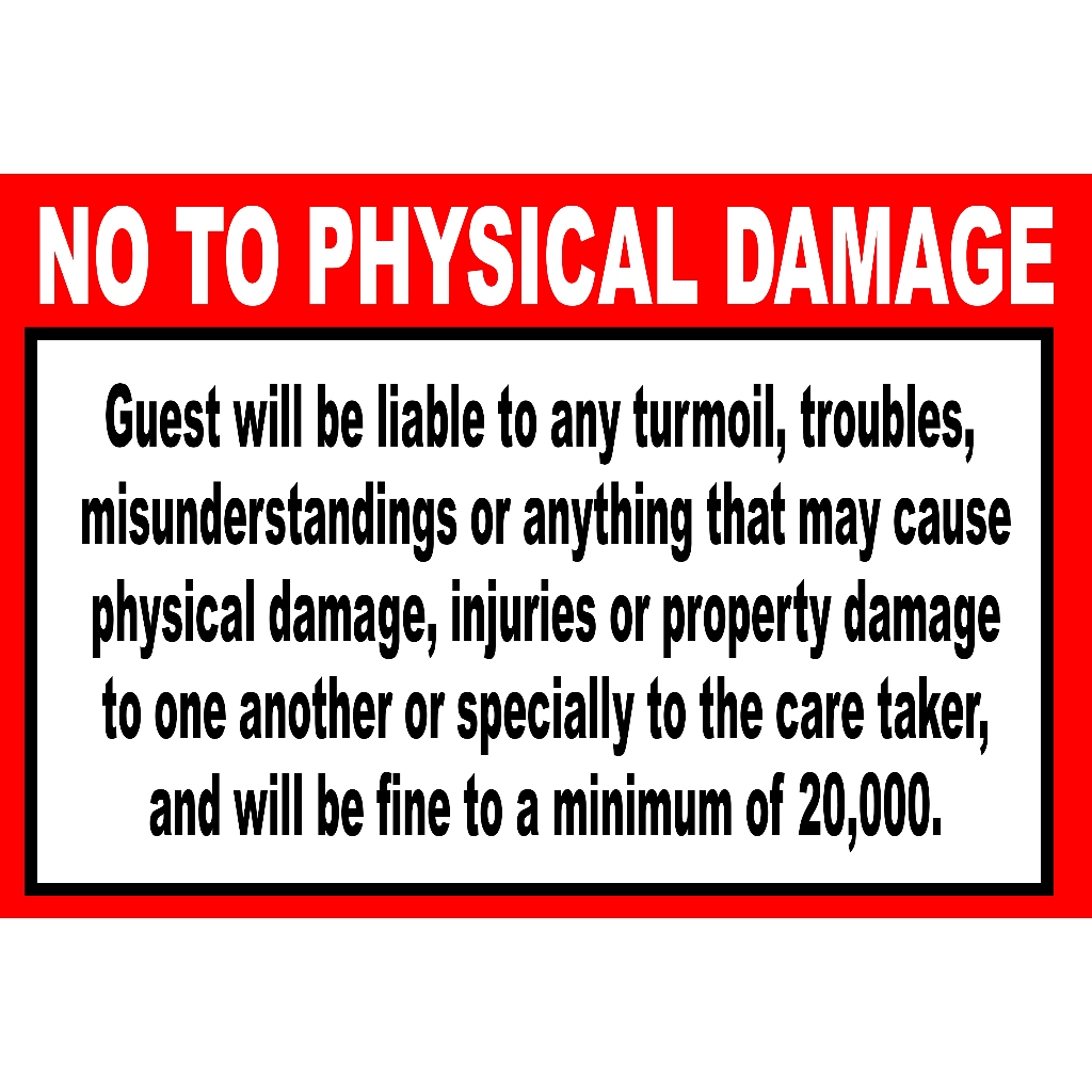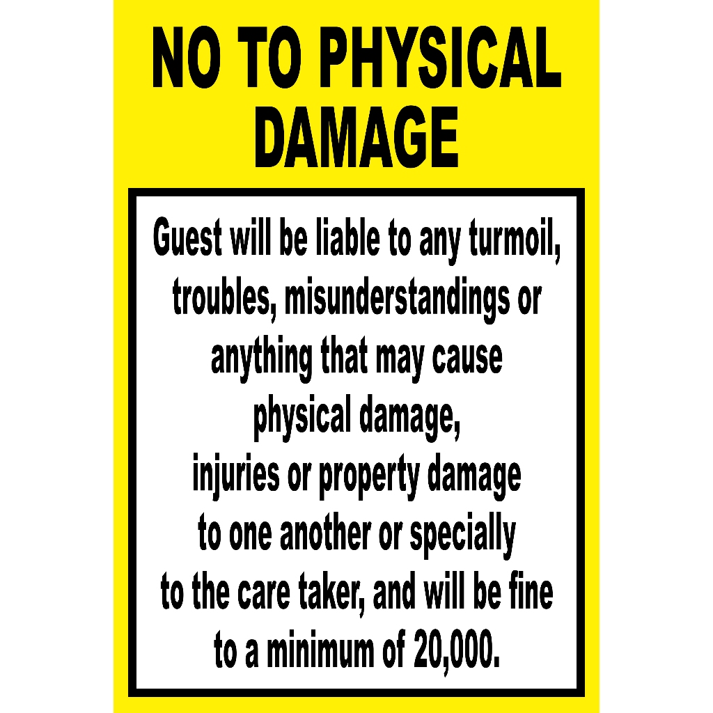 NO TO PHYSICAL DAMAGE SIGNAGE PVC TYPE WATERPROOF AND NON-FADING