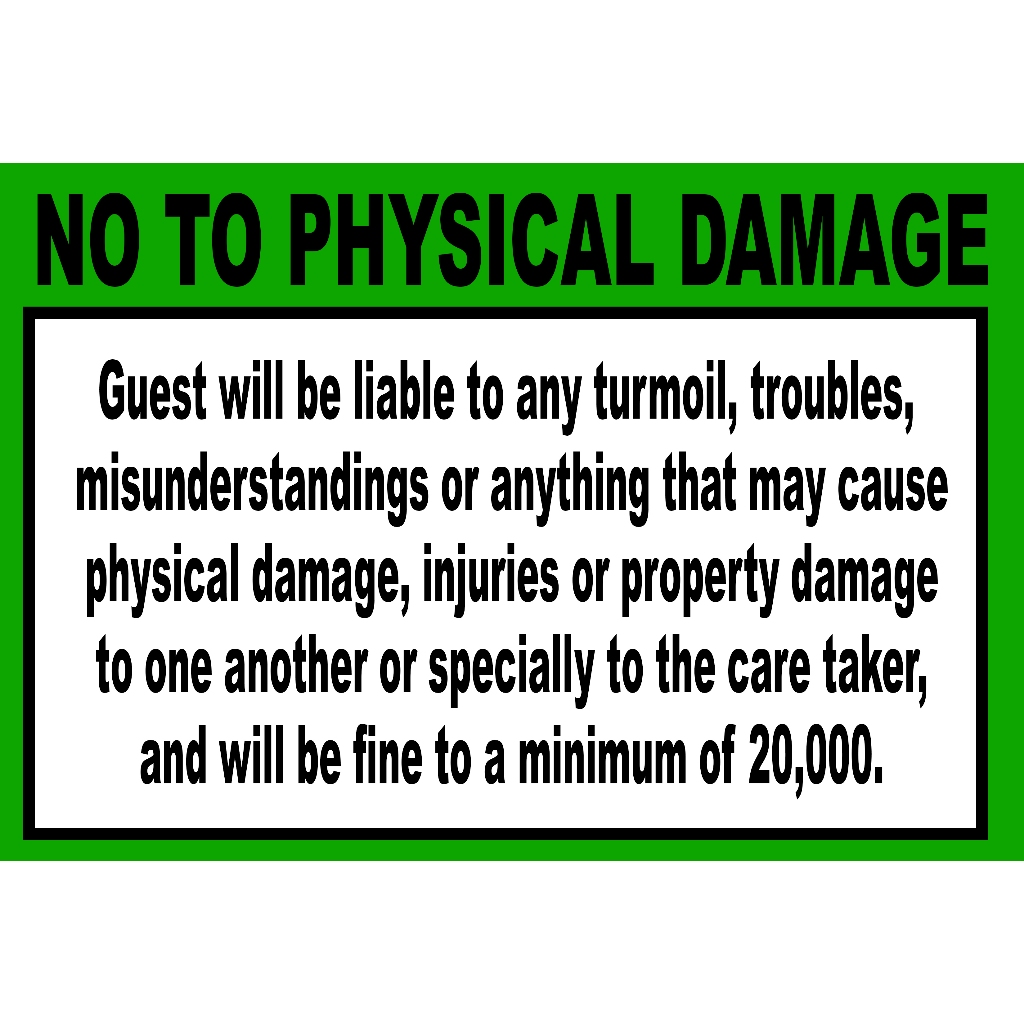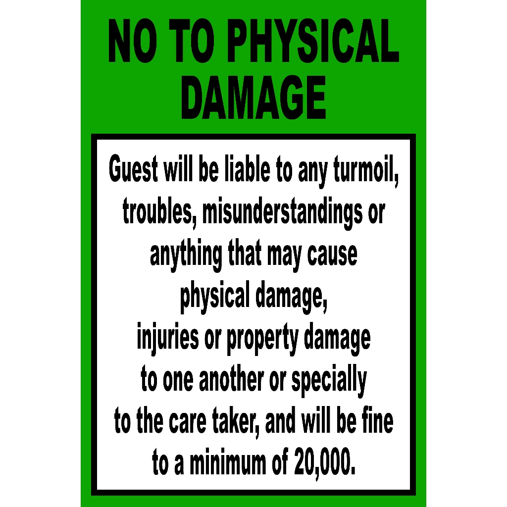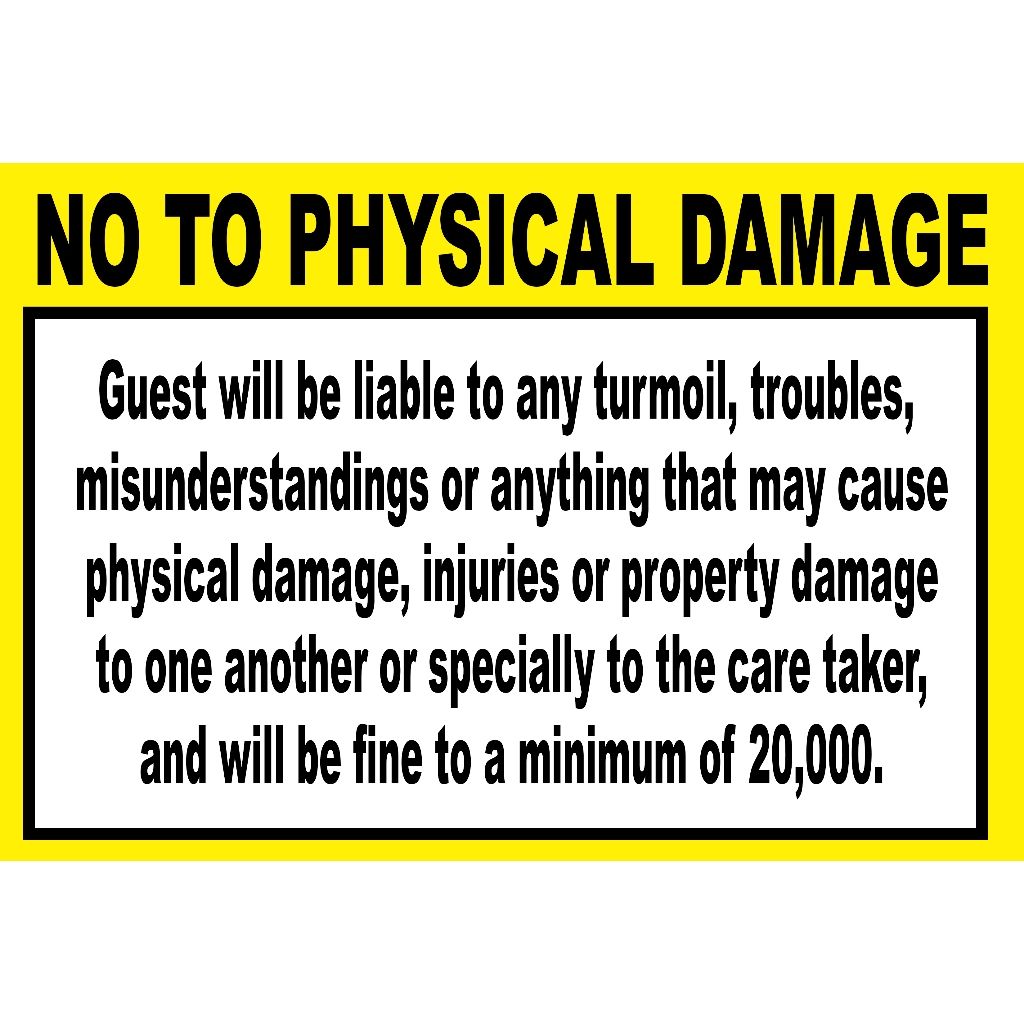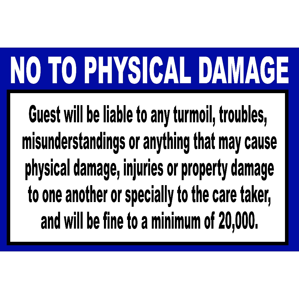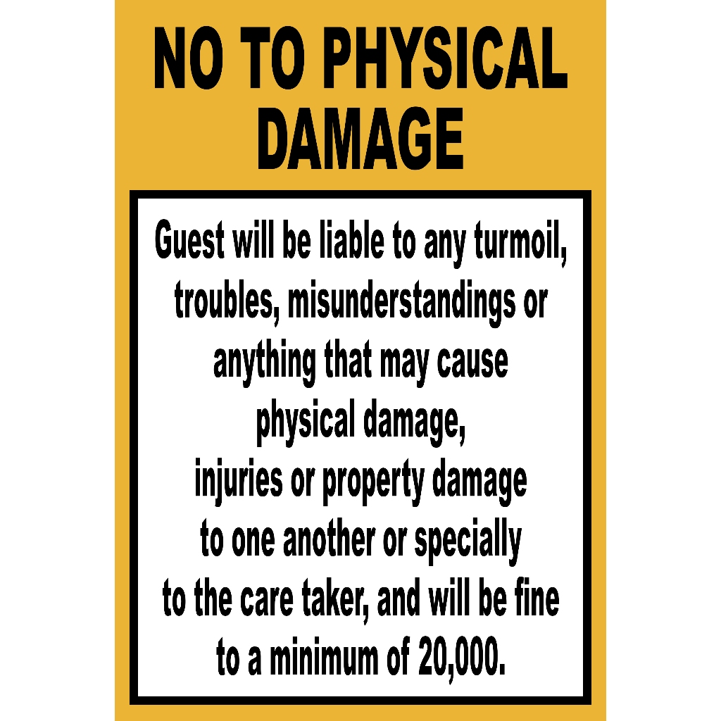 NO TO PHYSICAL DAMAGE SIGNAGE PVC TYPE WATERPROOF AND NON-FADING