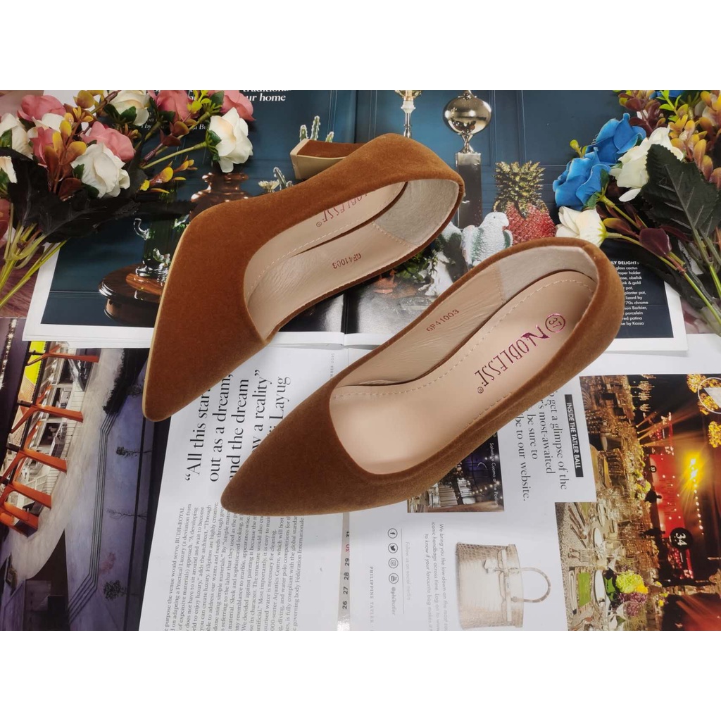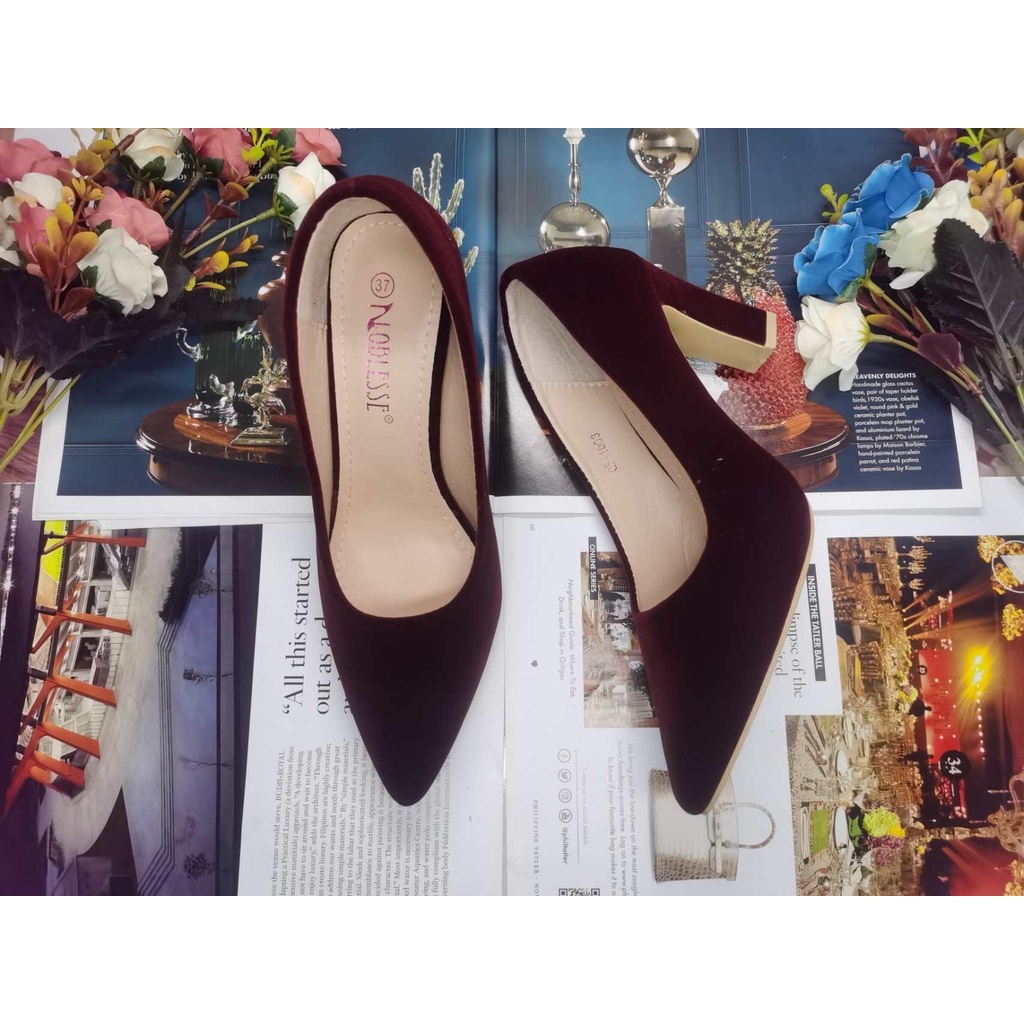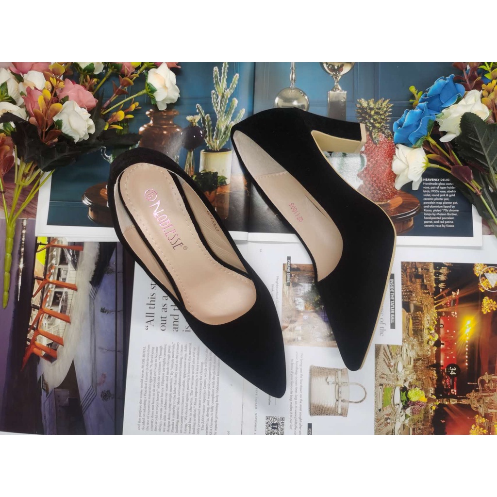 NOBLESSE Korean Pointed Toe Block Heel Shoes Black Office Work High Heel Shoes for Women 2025