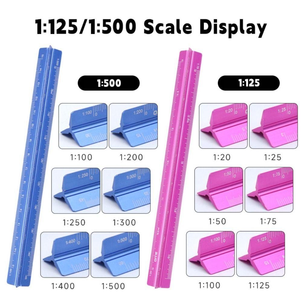NOBLEZO Triangular Scale, Metal/Plastic Drafting Measure Tool Proportional Scale, Multi-functional 10/15/30cm 1:20-1:500 Metric Scale Ruler Engineer