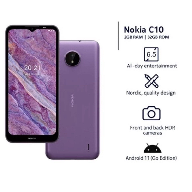 NOKIA C10 DUAL SIM QUADCORE ANDROID SMARTPHONE, PURPLE-OPEN LINE