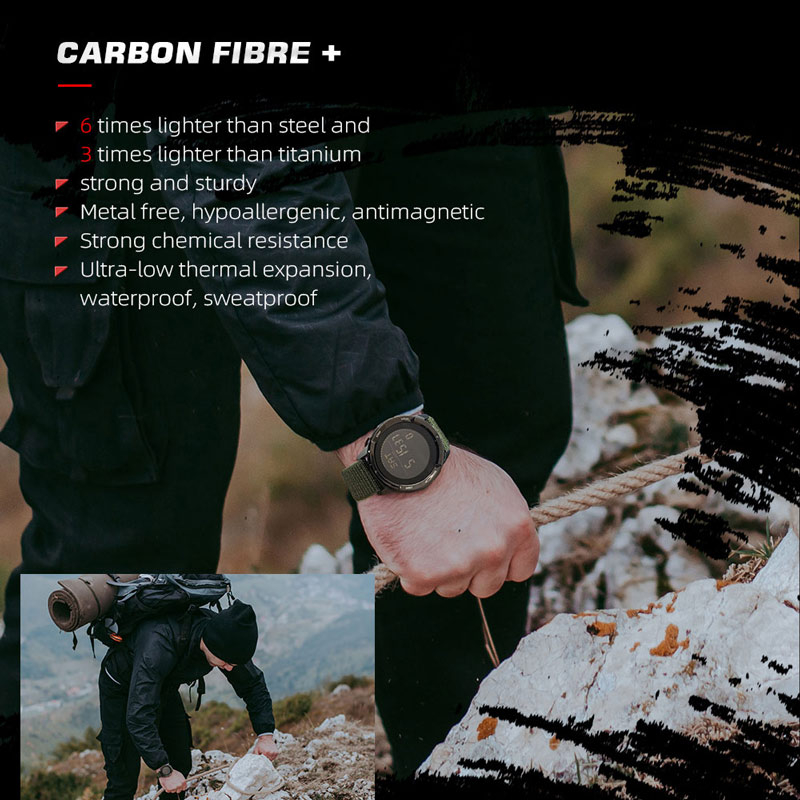 NORTH EDGE ALPS Original Carbon Fiber Case Compass Men Watch Nylon Green Strap 50M Waterproof Watch for men