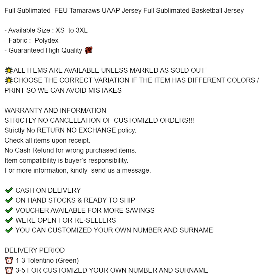 NORTHZONE FEU Tamaraws UAAP BASKETBALL JERSEY FREE CUSTOMIZE OF NAME AND NUMBER ONLY Full Sublimation