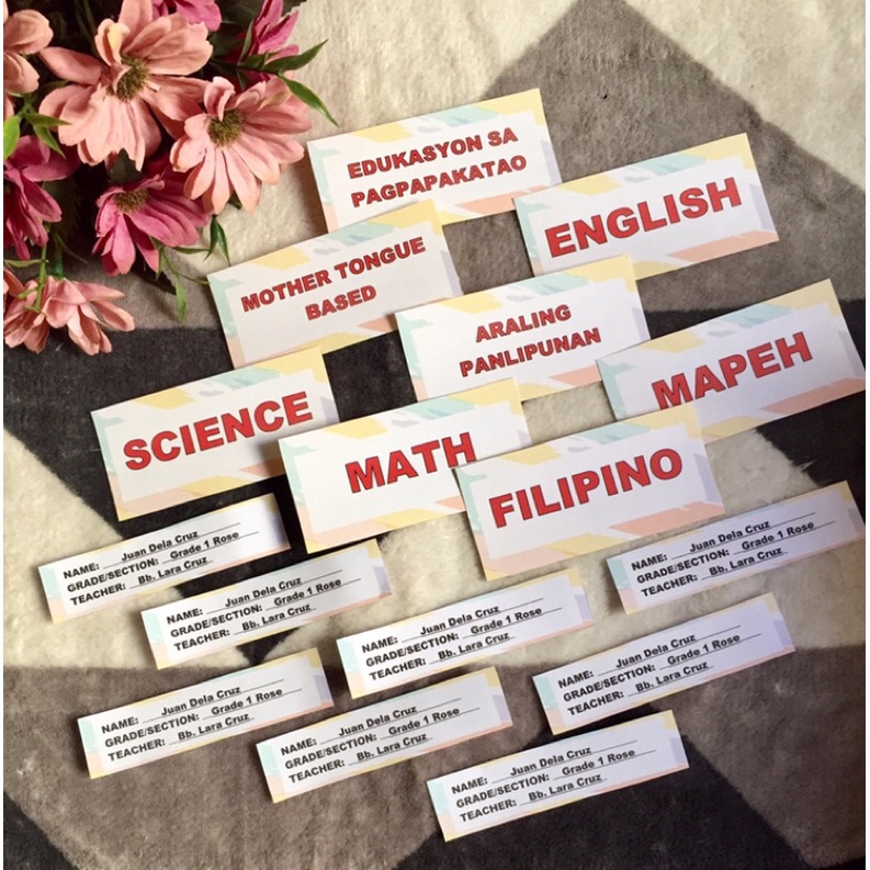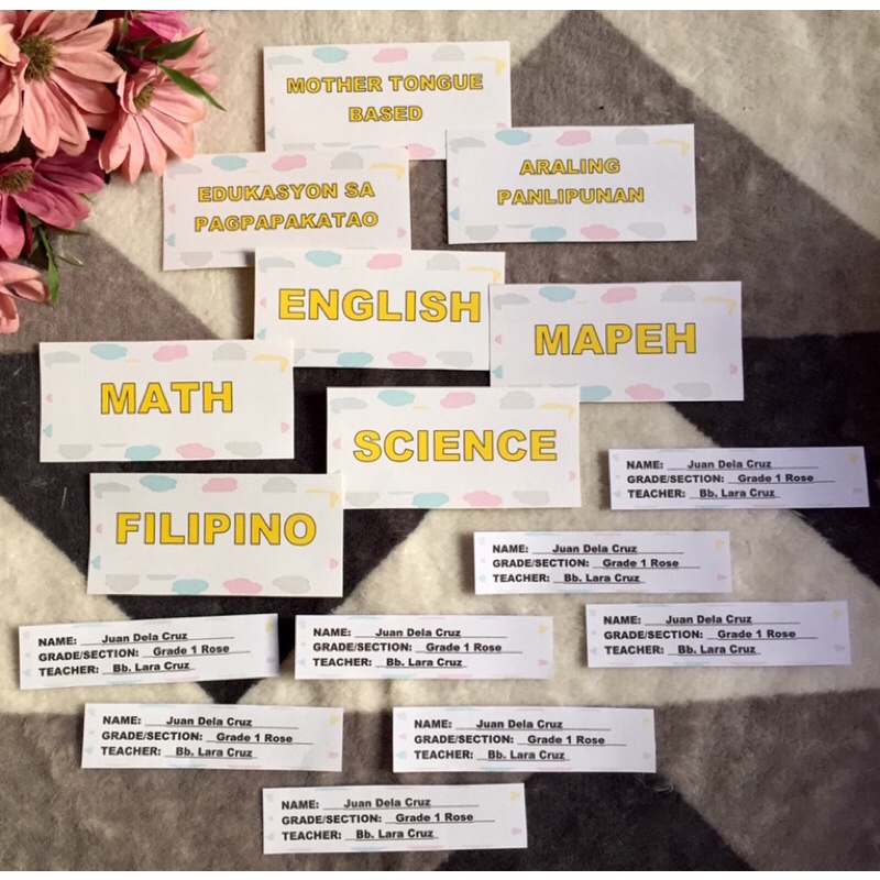 NOTEBOOK STICKERS (Subjects & Personalized name/Grade§ion/Teacher) 25 pesos per set